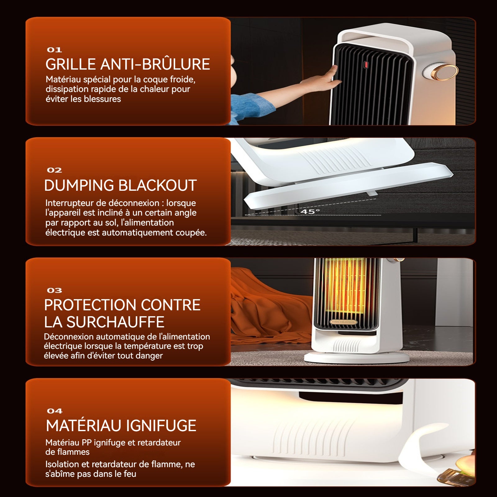 3. Température constante intelligente : Le chauffage soufflant dispose d'une fonction de régulation automatique de la température, évitant ainsi une surchauffe et améliorant le confort.