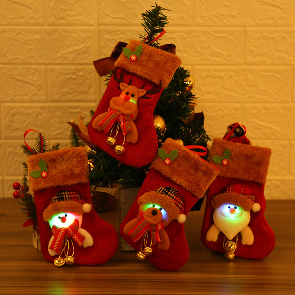 Sacs à bonbons pour bas de Noël 14*21cm 4pcs Avec lumière LED Sacs de cadeaux de Noël Convient pour la décoration de Noël