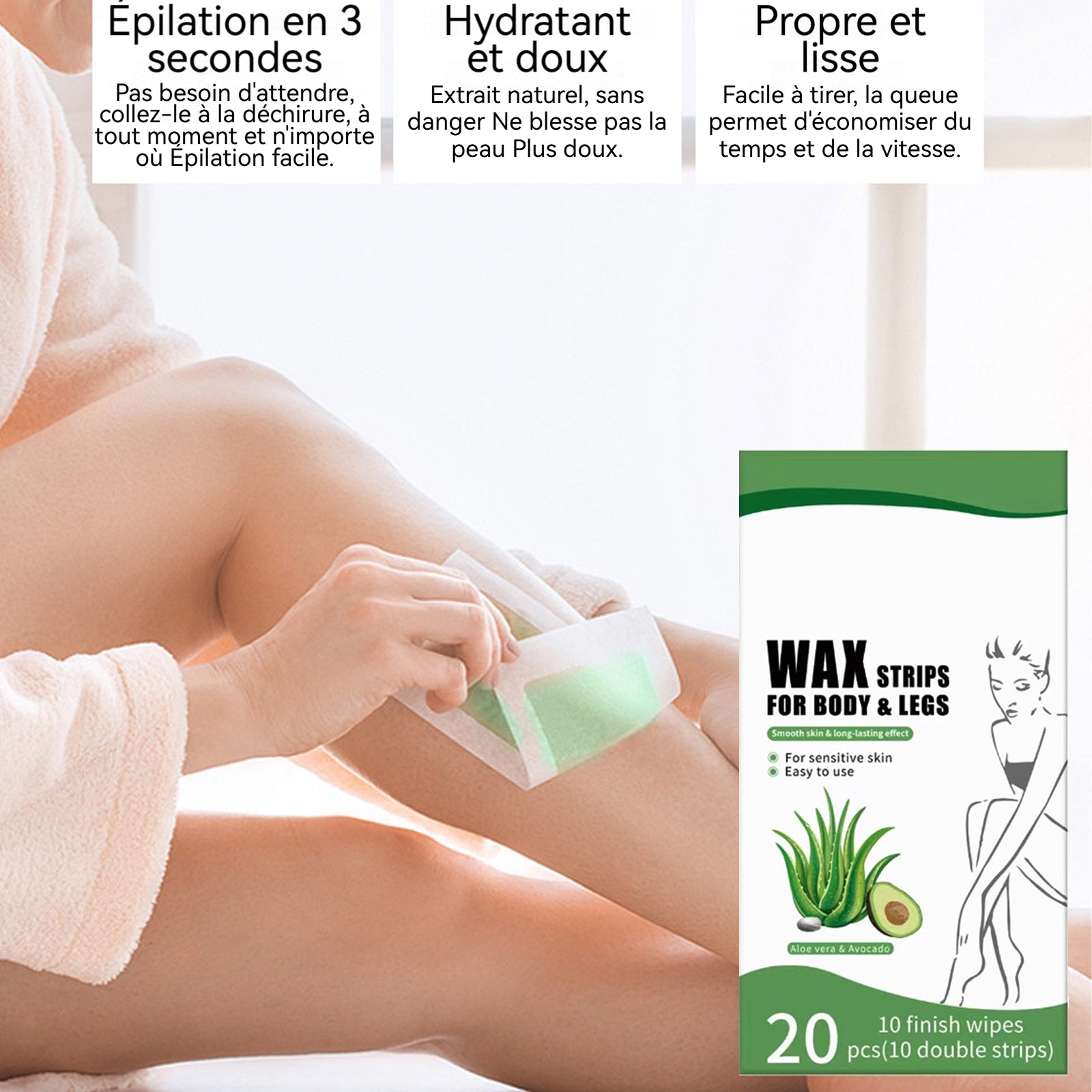Bandes de cire non tisséesCire épilatoire 10 paires Doux pour la peau Portable Sans chaleur bande de cire froide dépilatoire