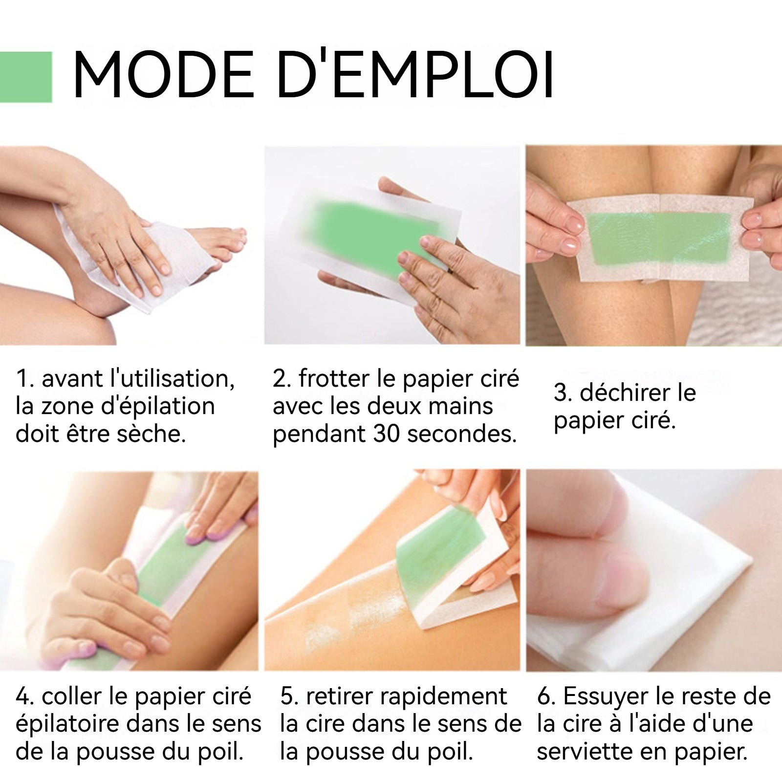 Portable et prêt à l'emploi : pas besoin de chauffage ni d'outils supplémentaires, les bandes de cire se déchirent et s'appliquent immédiatement, pour une utilisation efficace à domicile ou à l'extérieur.