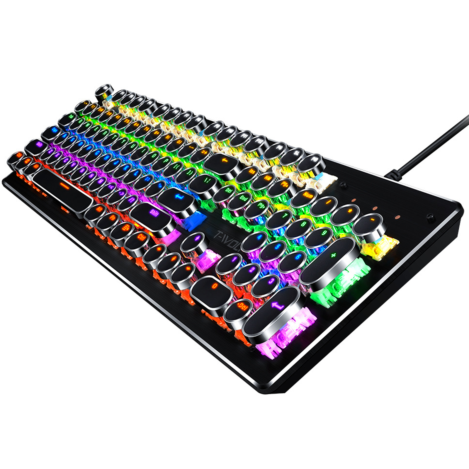 Clavier mécanique touches rondes style punk 104 touches avce rétroéclairé rvb étanche clavier de jeu clavier gaming mécanique