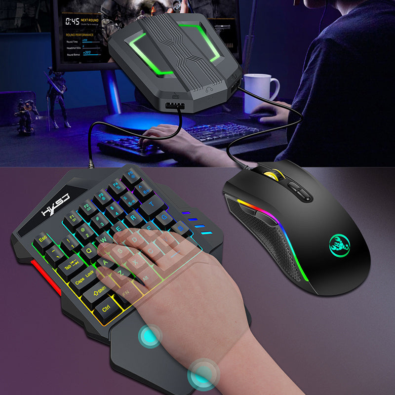 Convertisseur P pour clavier et souris de jeu à une main, câblé avec repose-poignets, effet de rétroéclairage RVB dédié