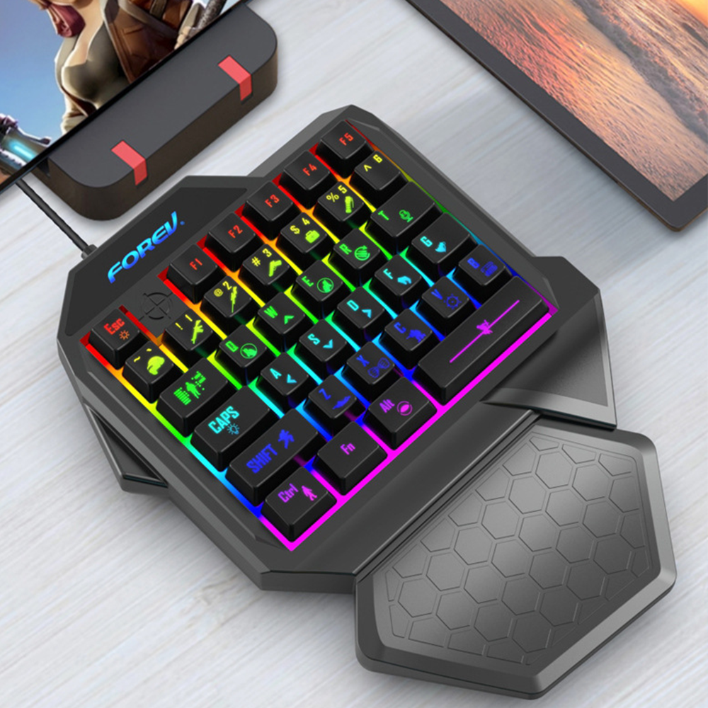 TD® Clavier lumineux de jeu à une main FVF6 jeu e-sport filaire manipulateur lumineux coloré sensation clavier repose-main