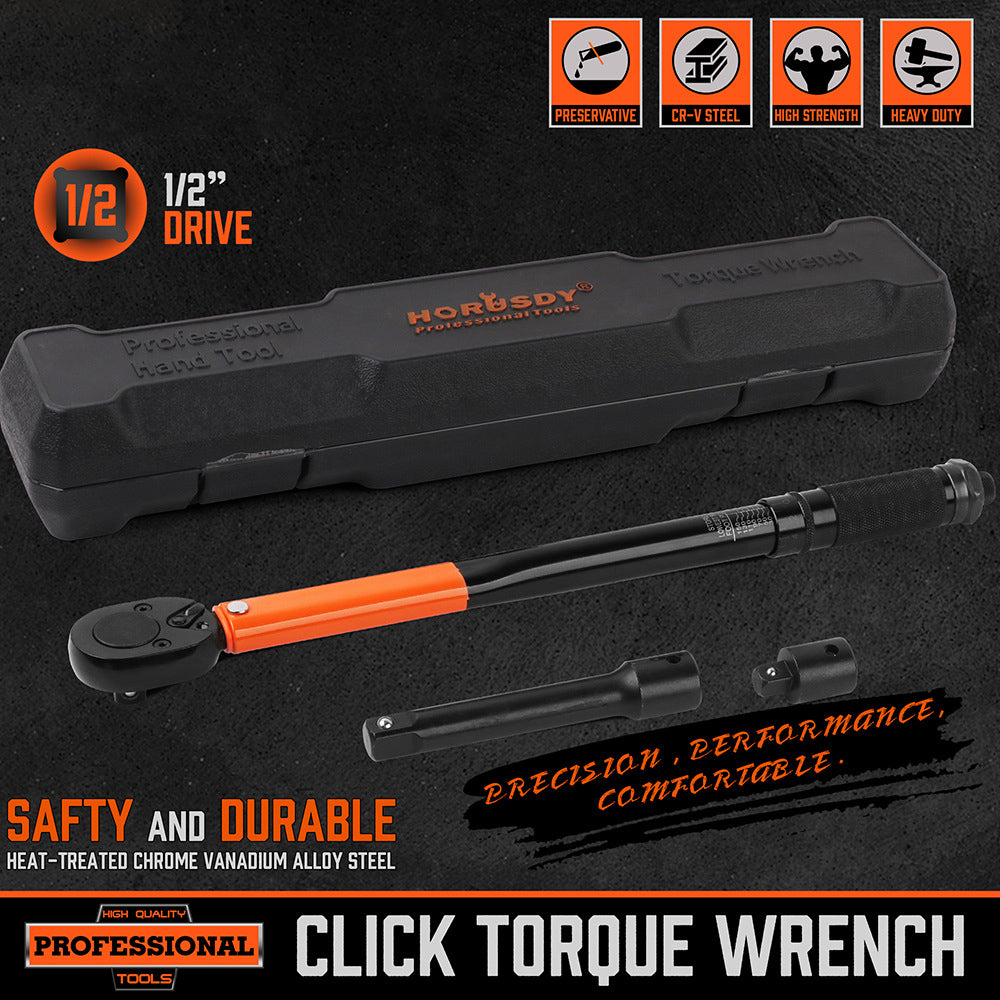 Clés dynamométriques 1/2" 28- 210 (N.m) Poignée en acier avec échelle en relief Tête à cliquet fixe Clé à double usage