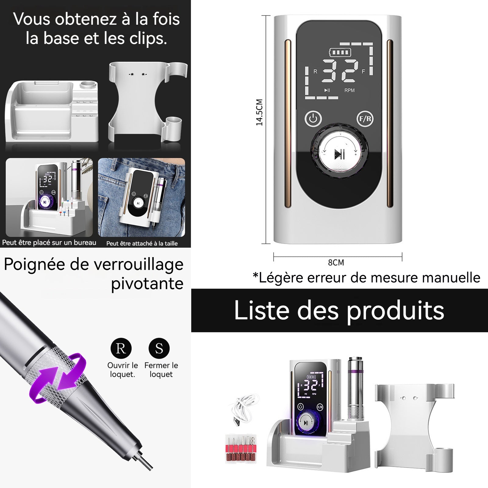 Lime a ongle electrique 45000 tr/min écran lcd plein écran 1200mah poignée de verrouillage rotative livré avec socle faible bruit