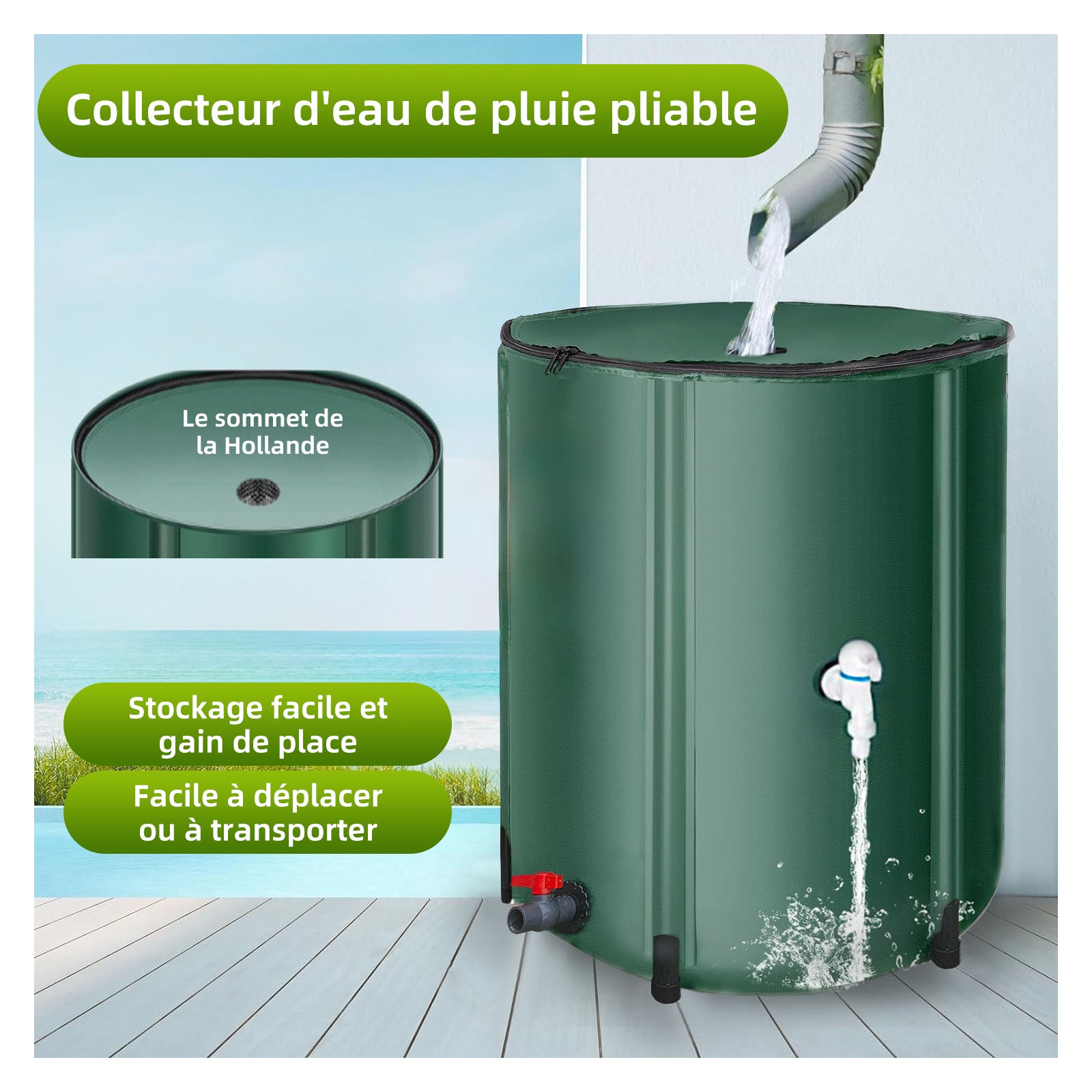Seau de stockage de l'eau 200L / 52 Gallon Réservoir pliable Eau de pluie PVC Patio Portable Multi-usage Récupération de l'eau