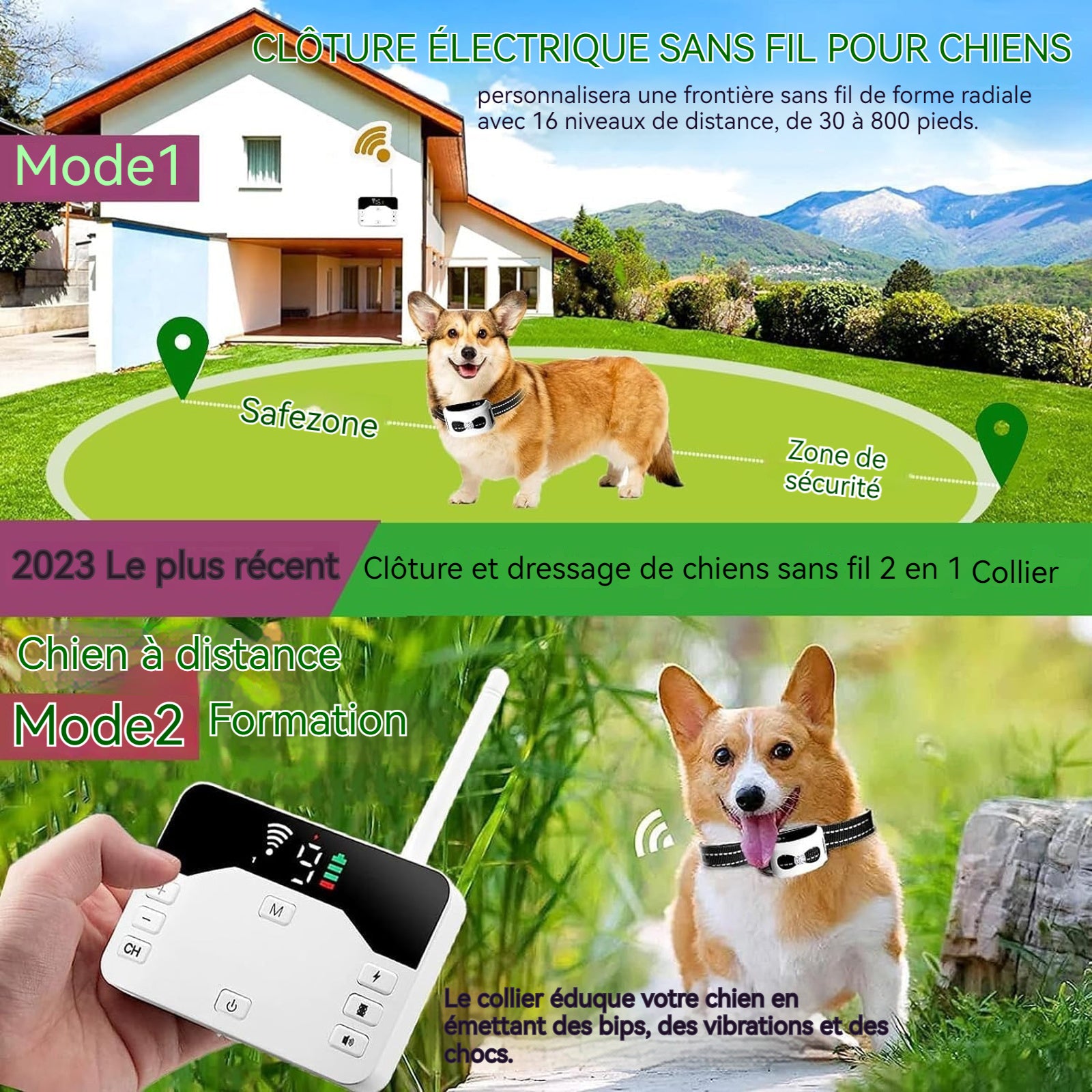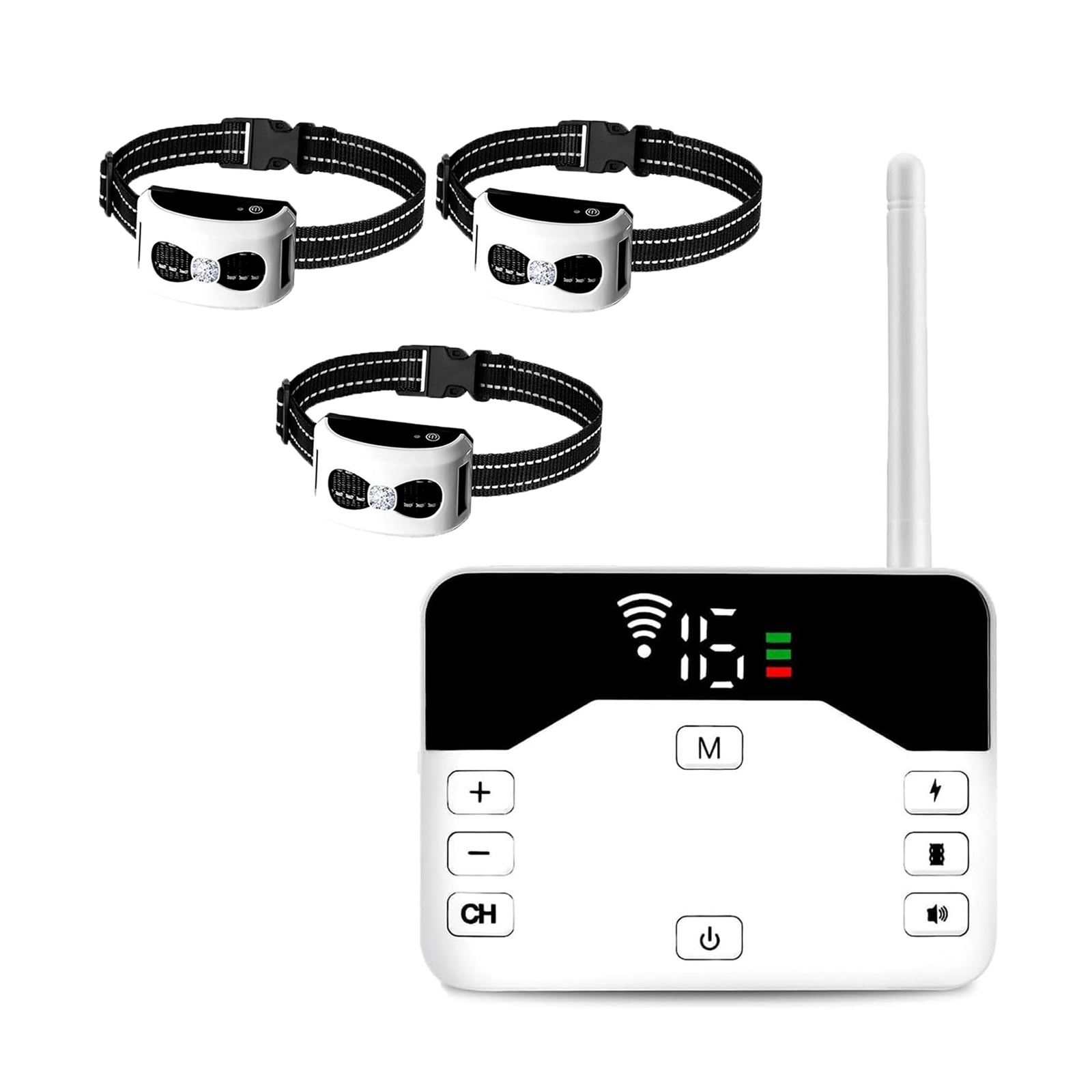 Système à distance de clôture pour chien sans fil 1 émetteur 3 récepteurs portée contrôlable de 20 à 500 m dispositif anti-aboiement