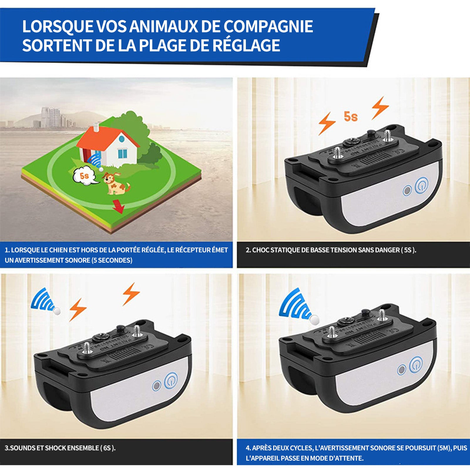 Fonction 2 en 1 : Affichage LED, clôture sans fil pour animaux de compagnie, télécommande pour entraîneur sonore et vibrant