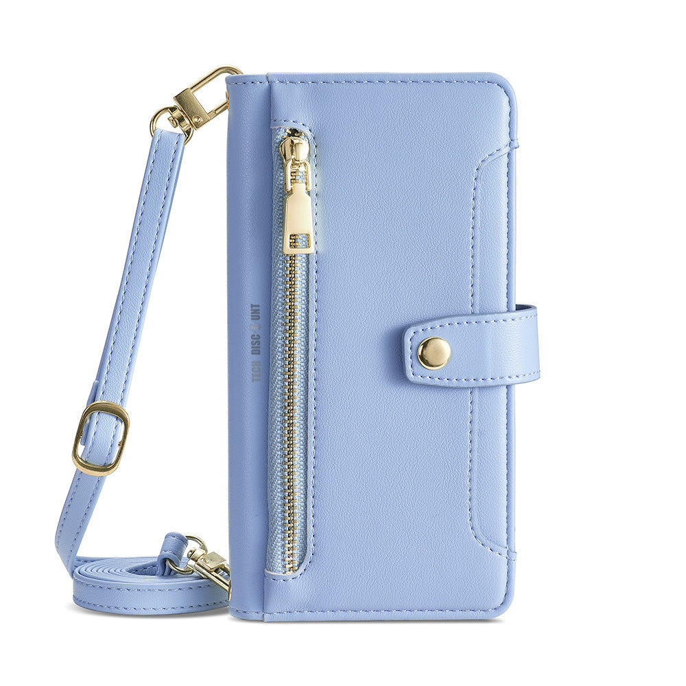 Étui en cuir pour téléphone iPhone 12 avec lanière courte et longue Fentes pour cartes multiples Bouton magnétique sécurisé