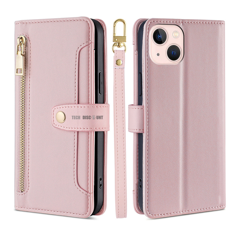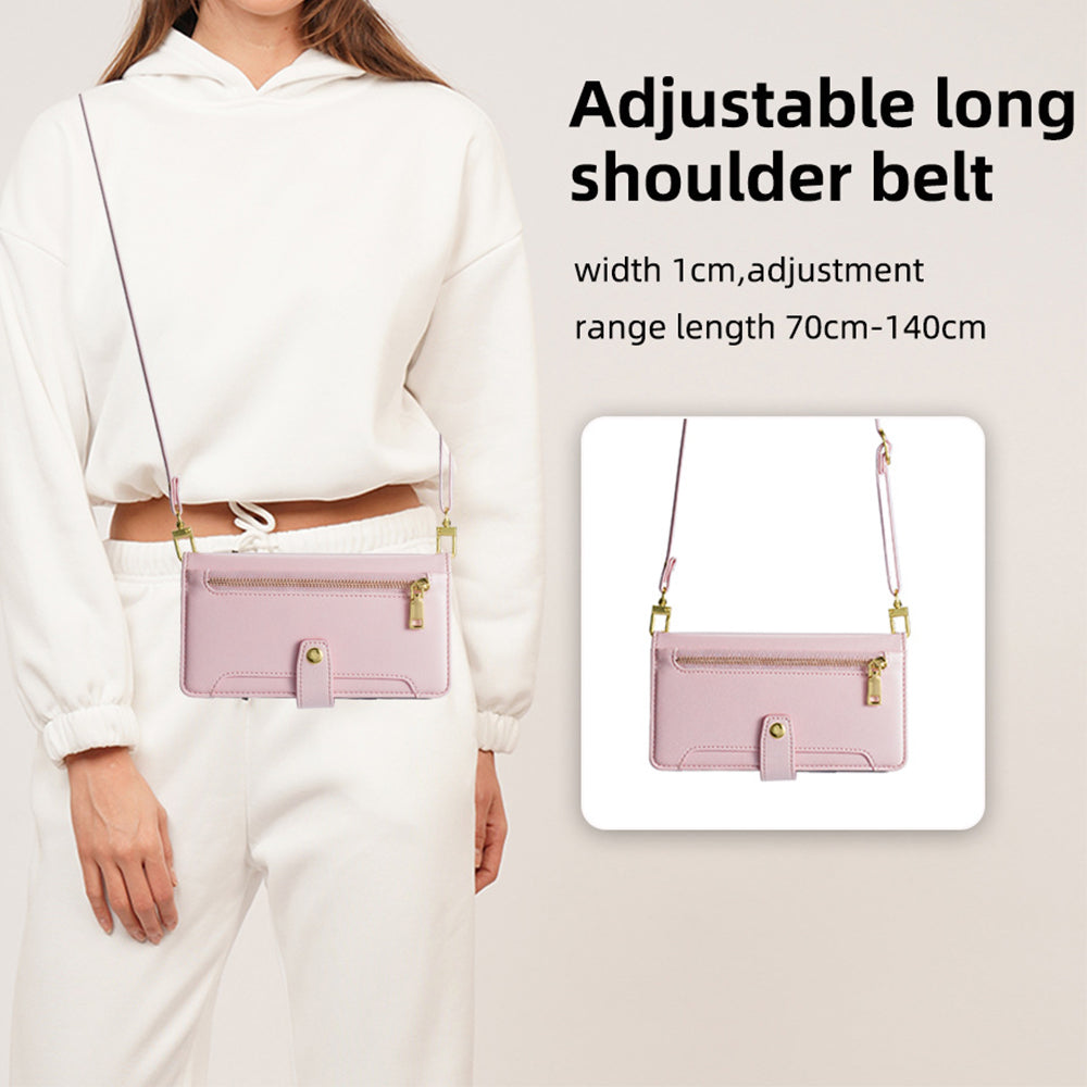 Étui en cuir pour téléphone iPhone 13 avec lanière courte et longue Fentes pour cartes multiples Bouton magnétique sécurisé