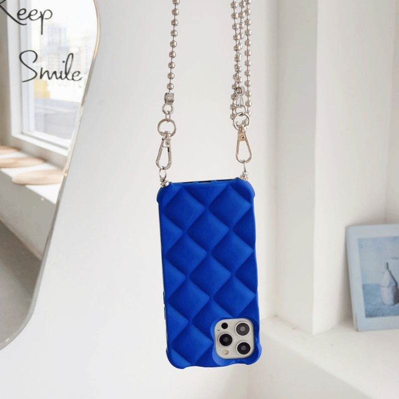 iPhone14Promax étui pour téléphone portable style Xiaoxiang style rhombique bandoulière chaîne suspendue couleur bleu Klein