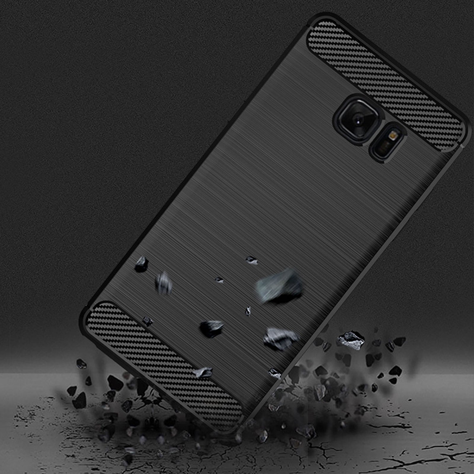 TD® Coque de téléphone en silicone en fibre de carbone pour Samsung Galaxy Note9 Protection brossée Texture en métal nu