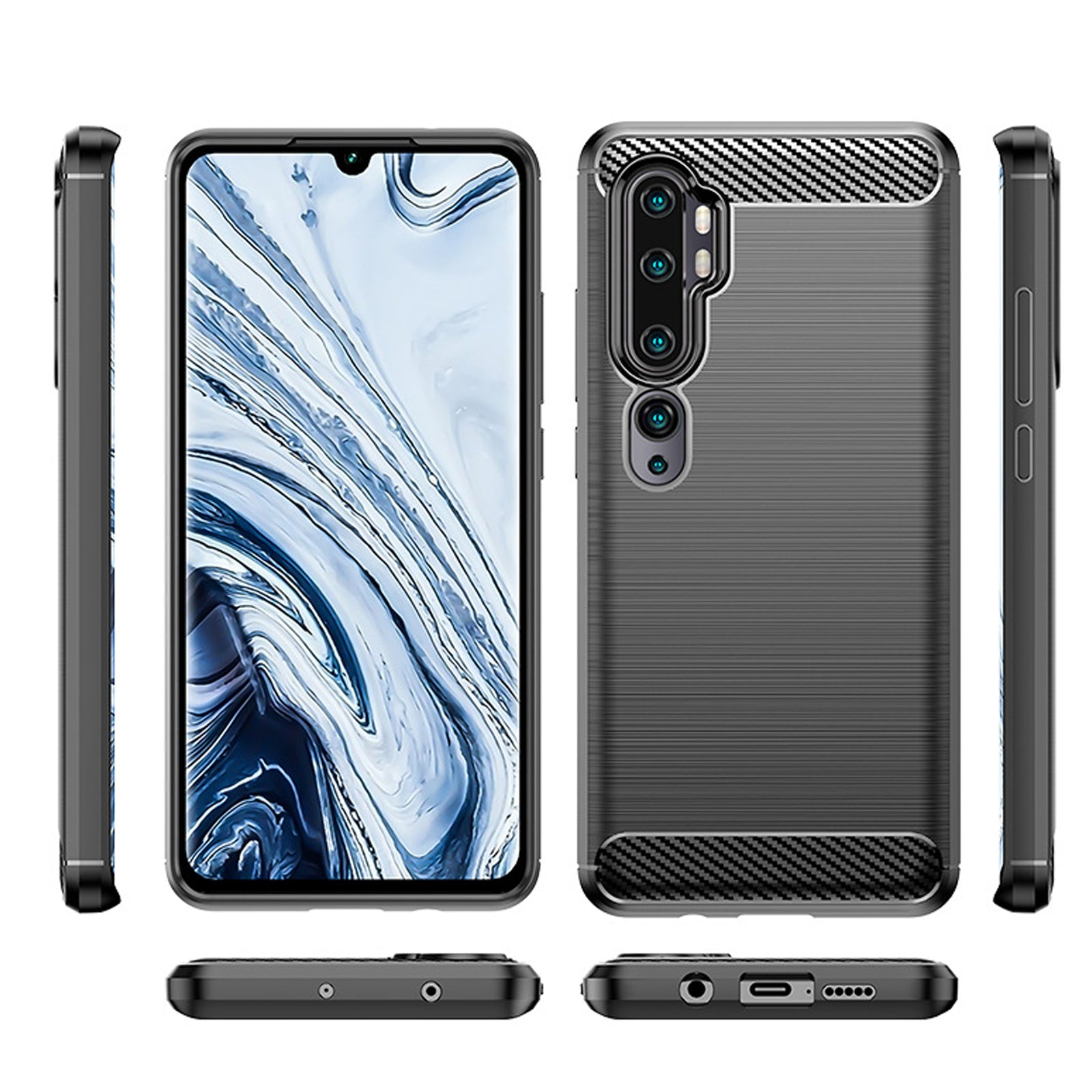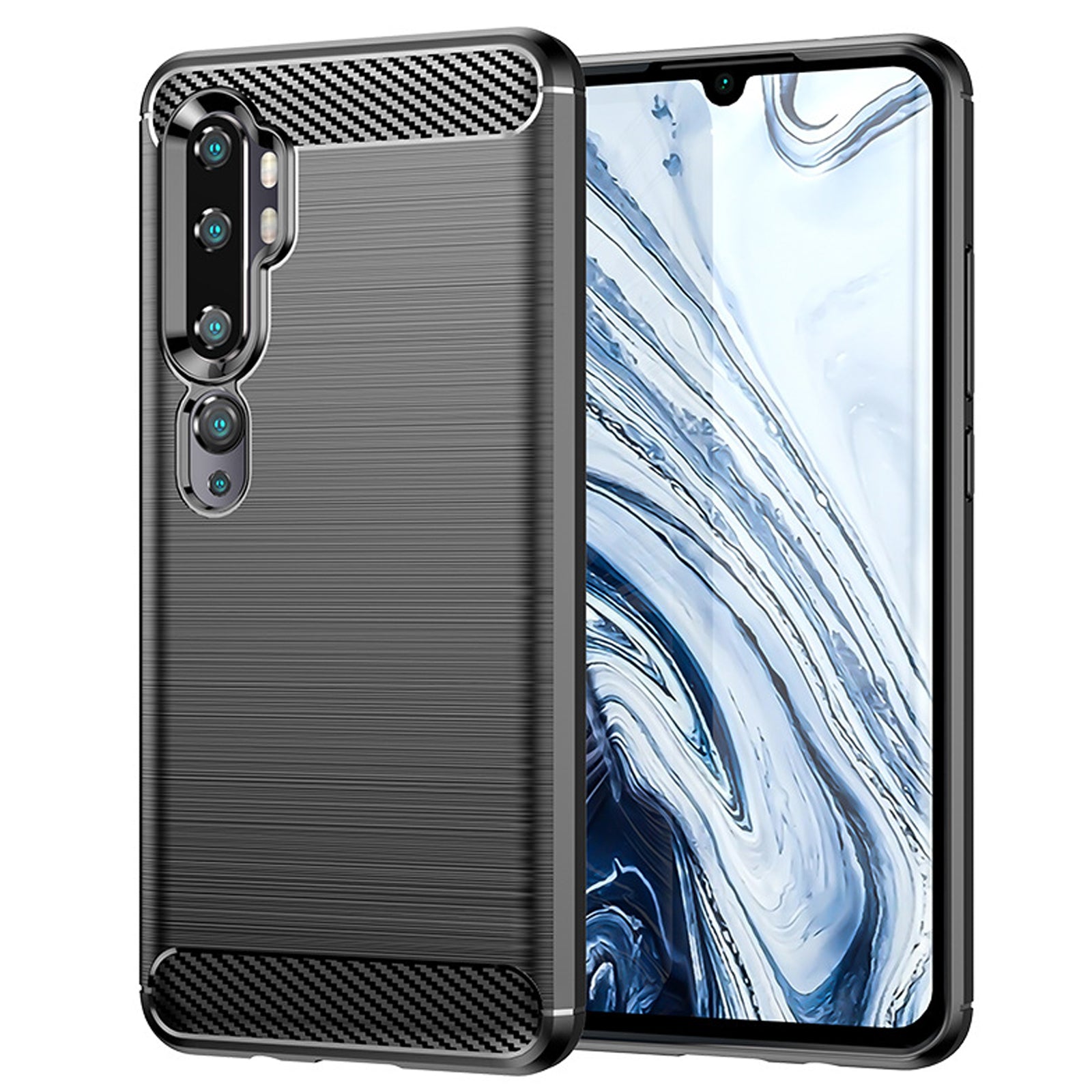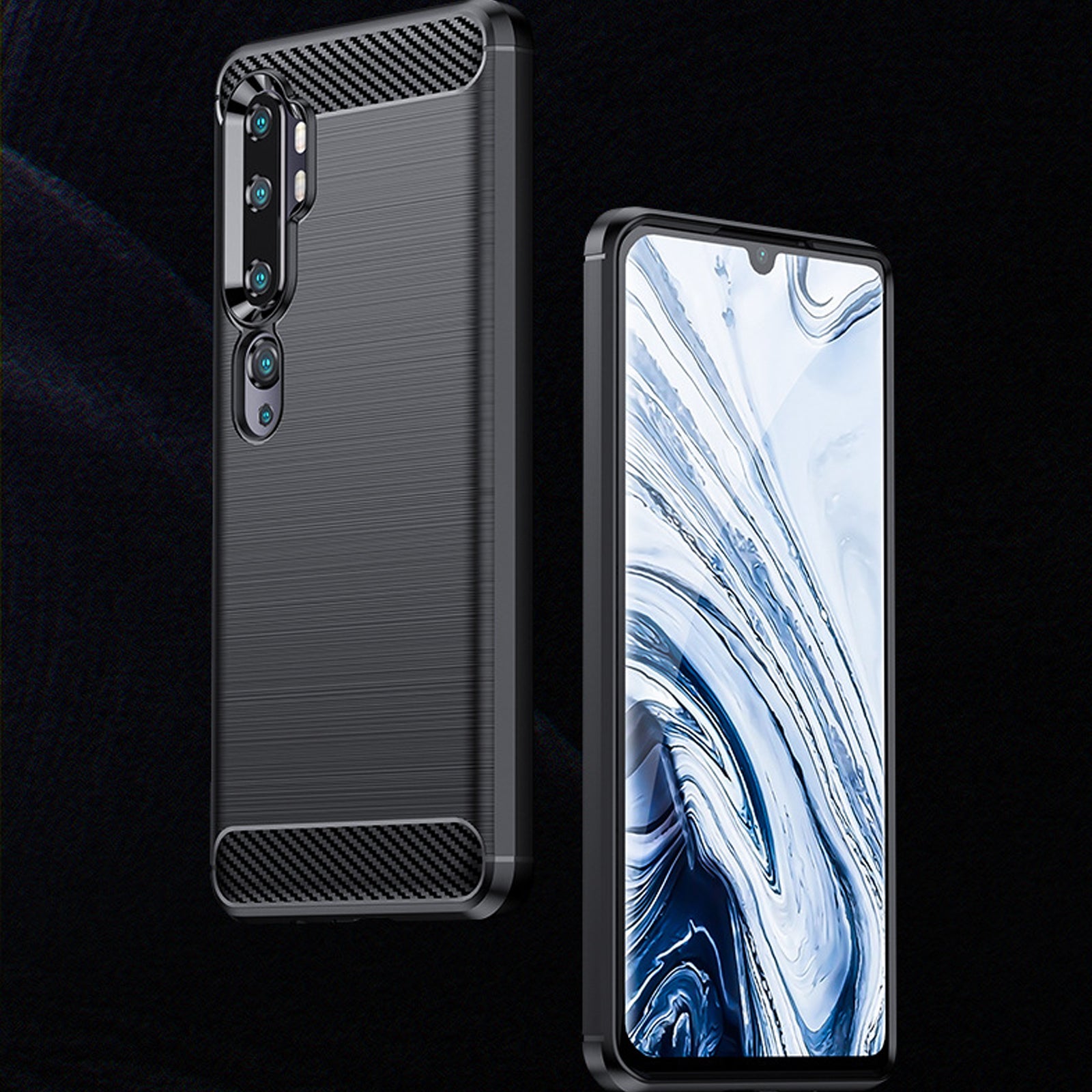 TD® Coque de téléphone en silicone en fibre de carbone pour Xiaomi Note 10 Coque de téléphone brossée douce et résistante aux chocs