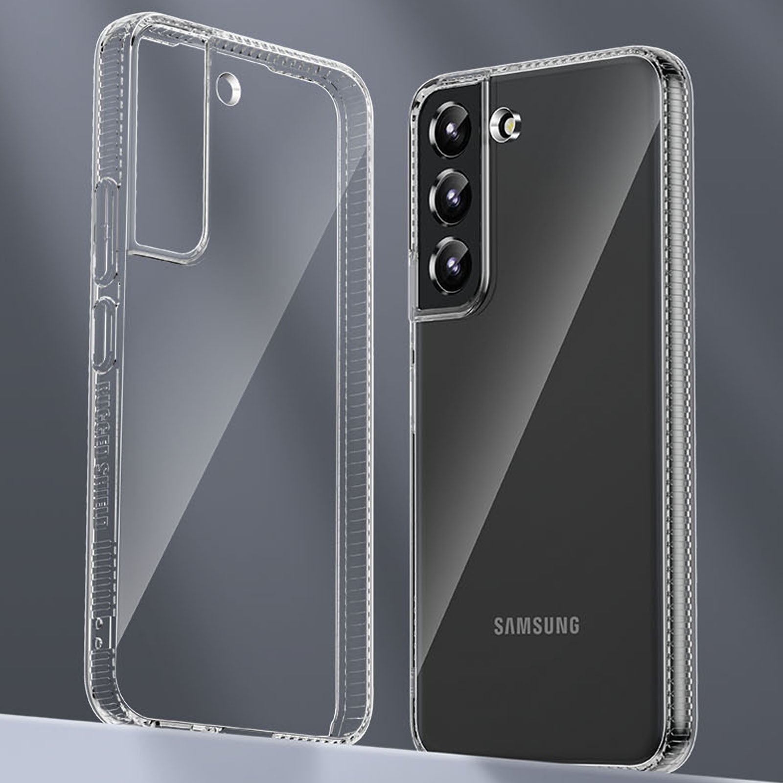 TD® Coque de téléphone transparente anti-empreintes digitales pour Samsung Galaxy S22 + matériau TPU antichoc à texture en métal nu