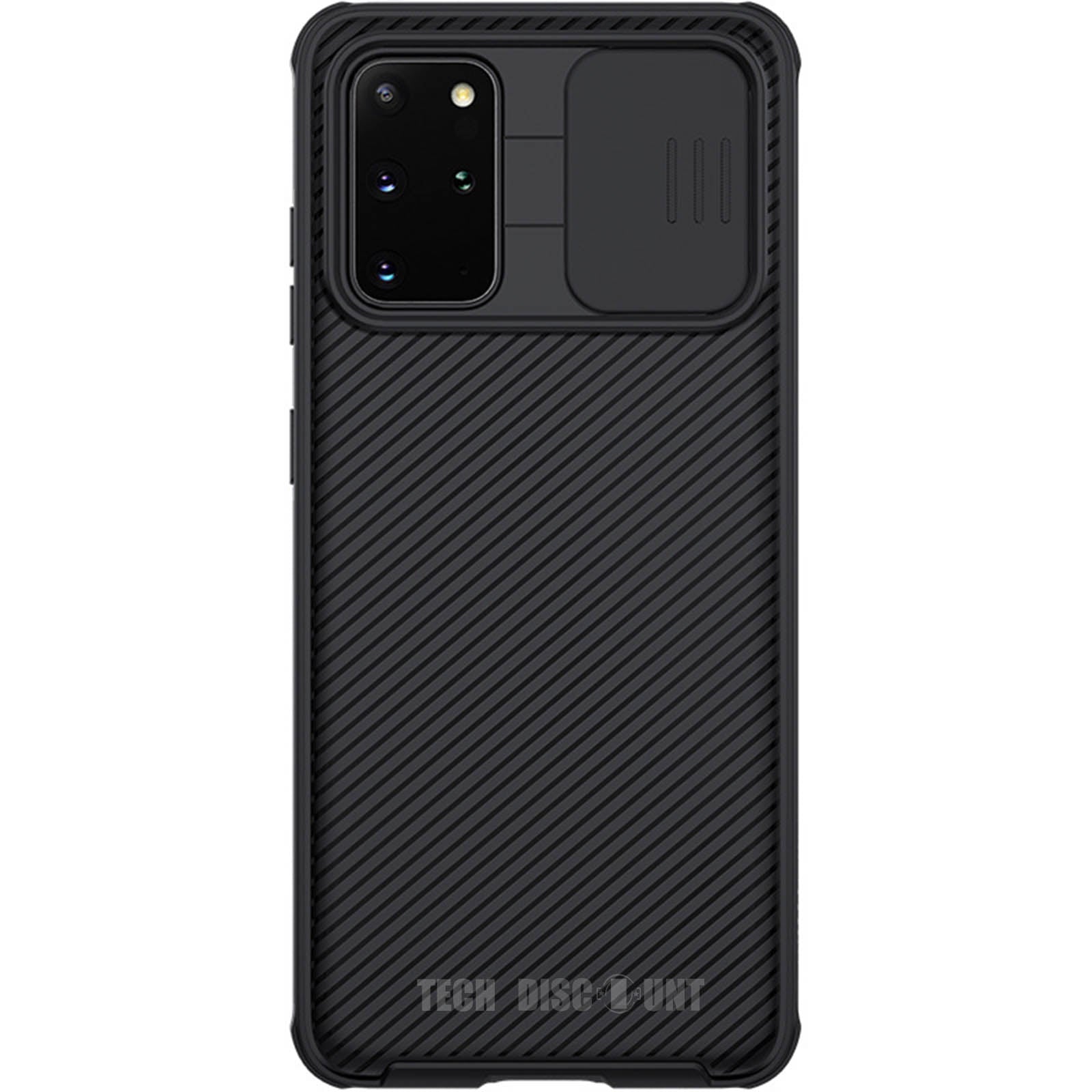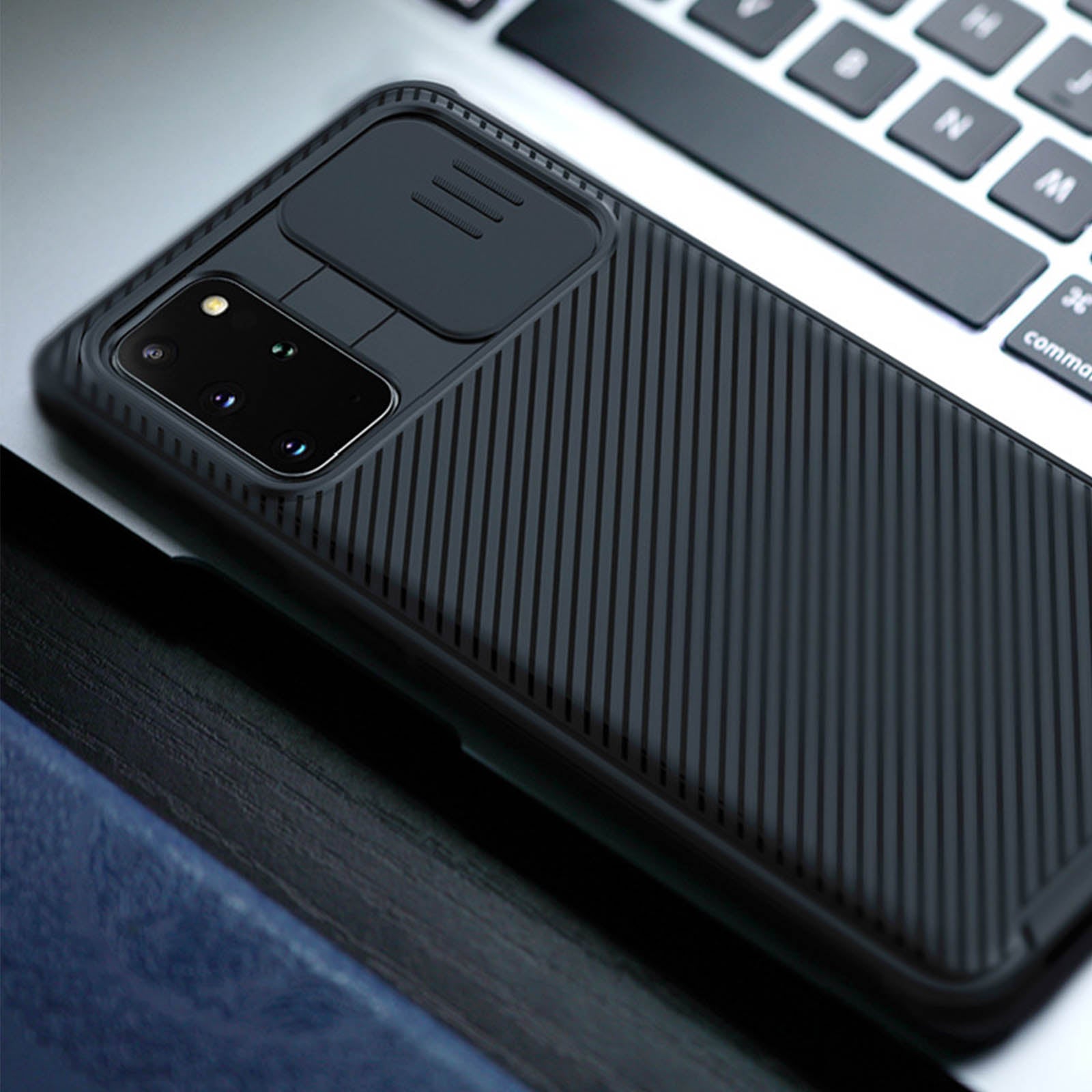 Il s'agit d'une coque de téléphone résistante aux chocs pour Samsung Galaxy S20+. Couvercle coulissant miroir noir, lunettes de protection de la vie privée.