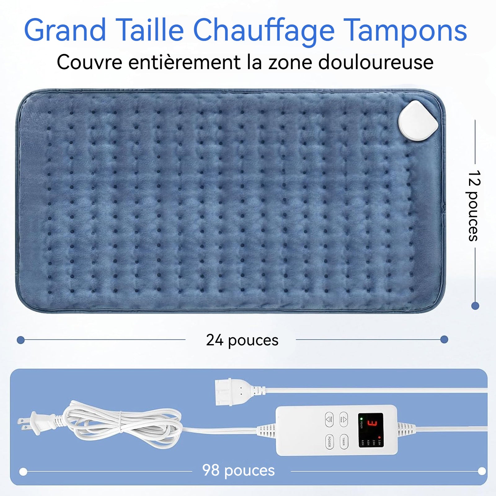 Coussin chauffant 30x60cm Flanelle 6 niveaux de chaleur 4 niveaux de minuterie protection contre la surchauffe Couverture chauffante