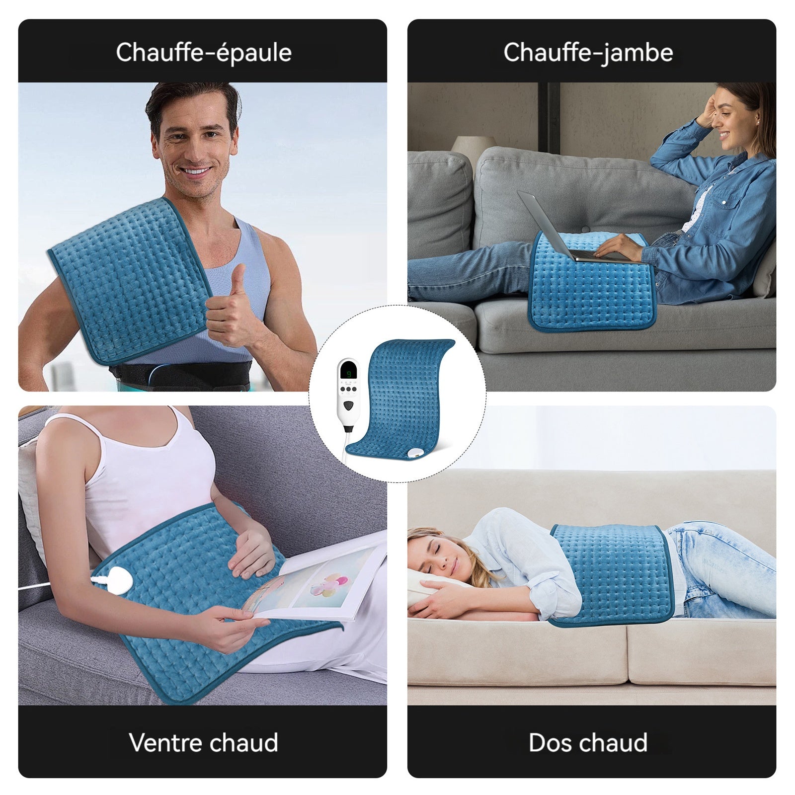 Coussin chauffant 40x76cm velours cristal 9températures 4 niveaux de minuterie protection contre la surchauffe Couverture chauffante