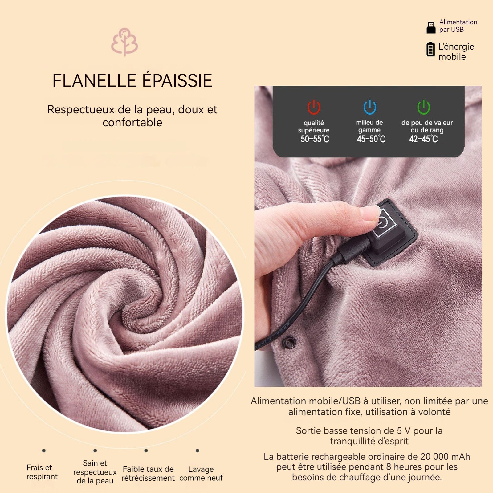Nom du produit : Couverture chauffante USB