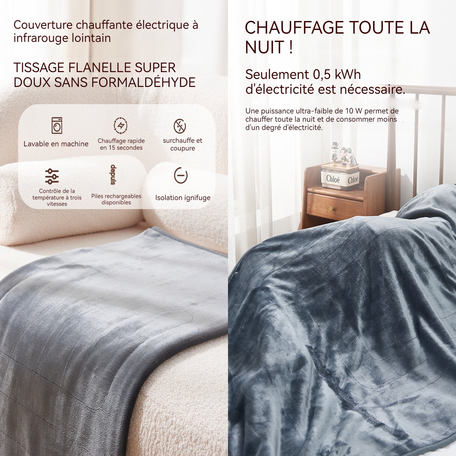 2. Trois niveaux de température : Le plaid dispose d'un design à trois niveaux de température, affiché par différentes couleurs, permettant un ajustement facile de la chaleur pour répondre à divers besoins de chaleur.