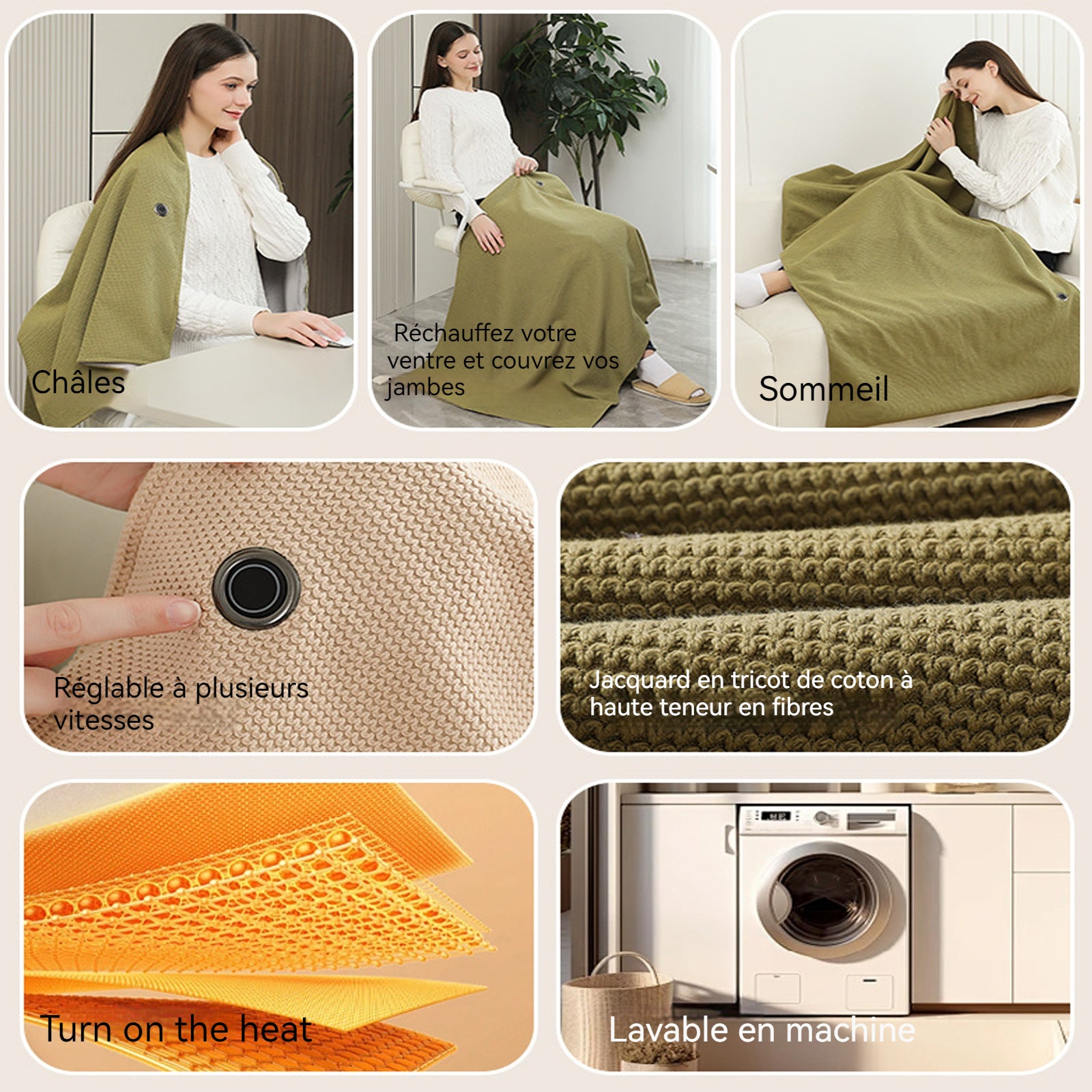 Couverture électrique 80x150cm 10W couverture chauffante lavable mobile USB avec 3 modes de température avec fermeture à glissière