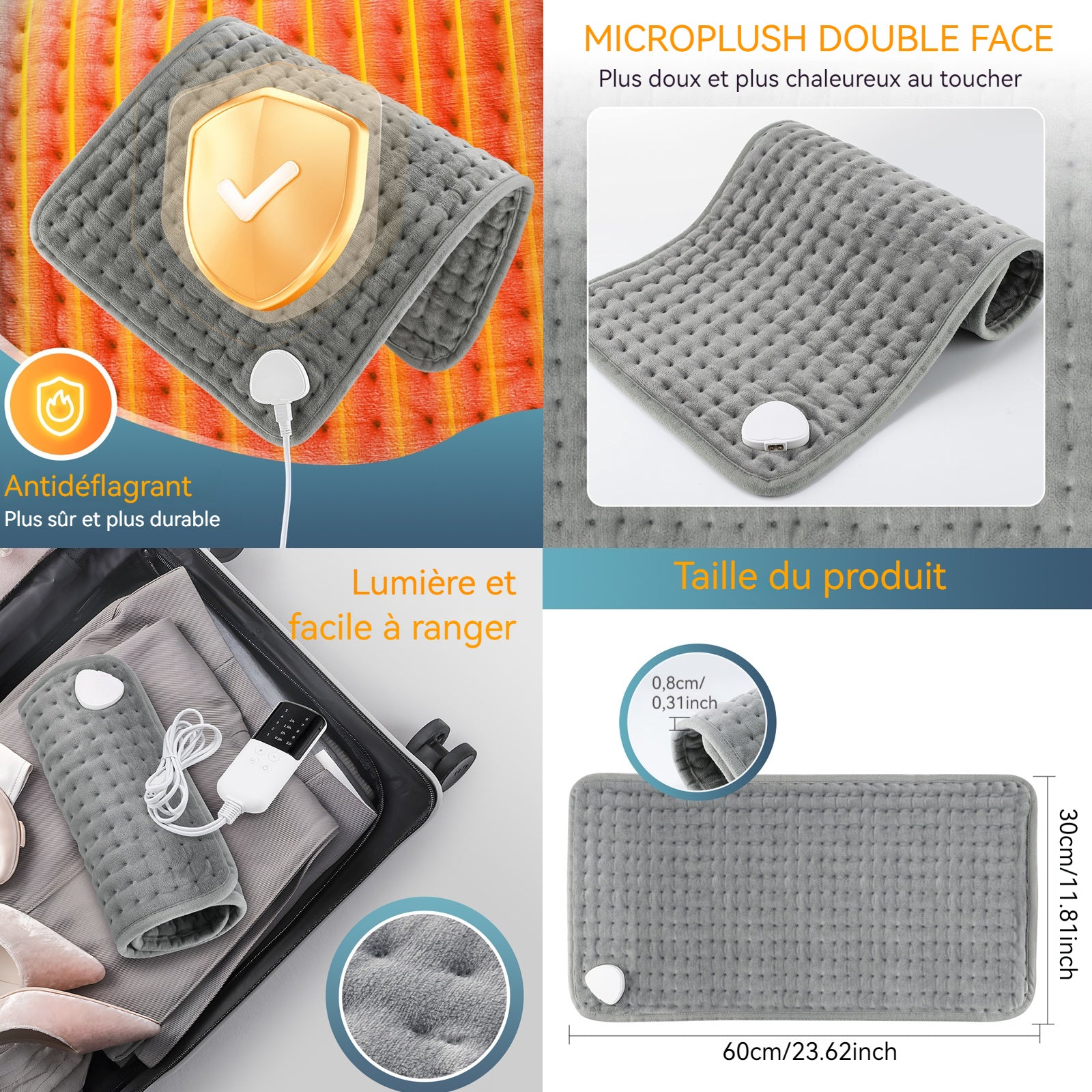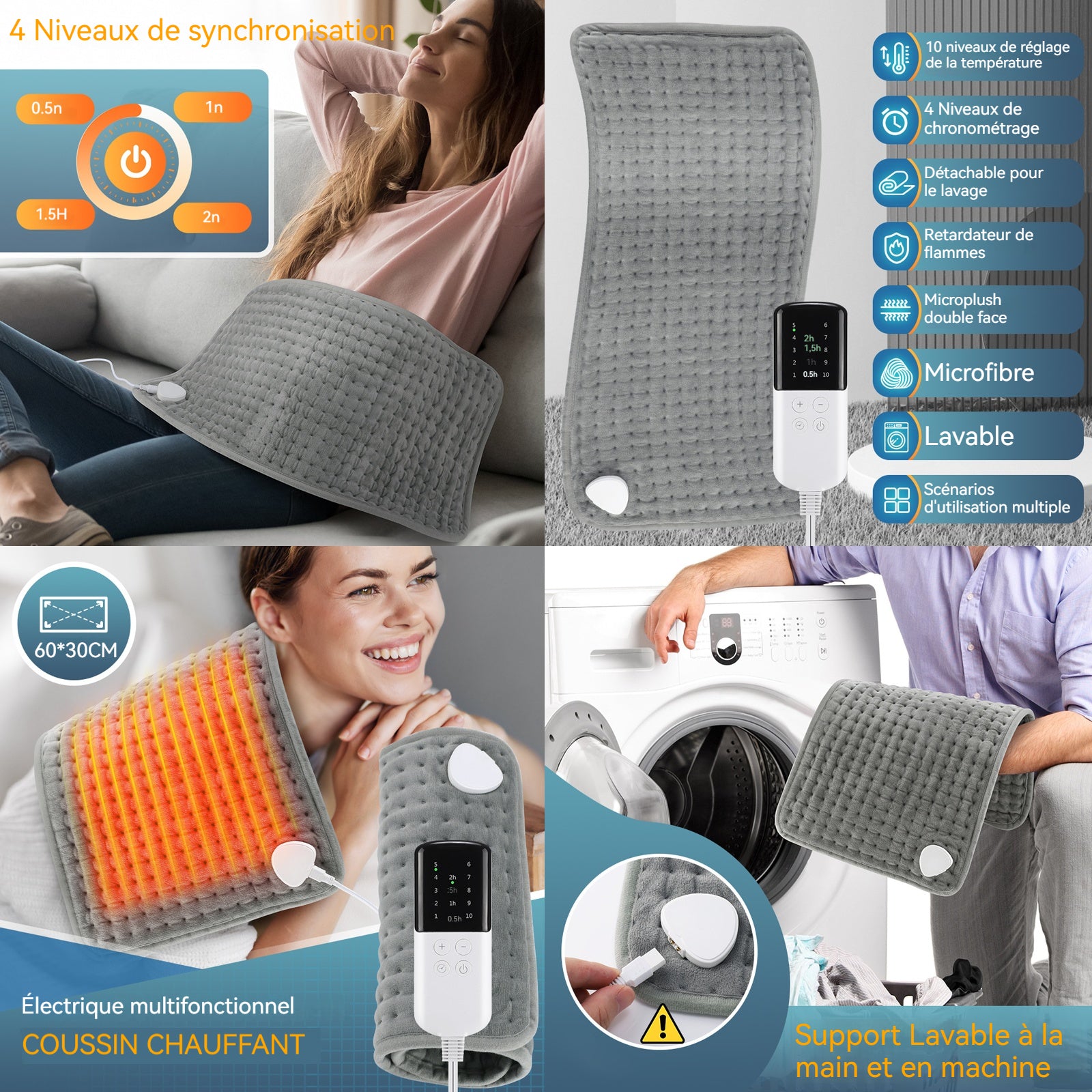 Couverture électrique coussin chauffant rapide multifonctionnel 10 modes de réglage de température et 4 modes de réglage de l'heure