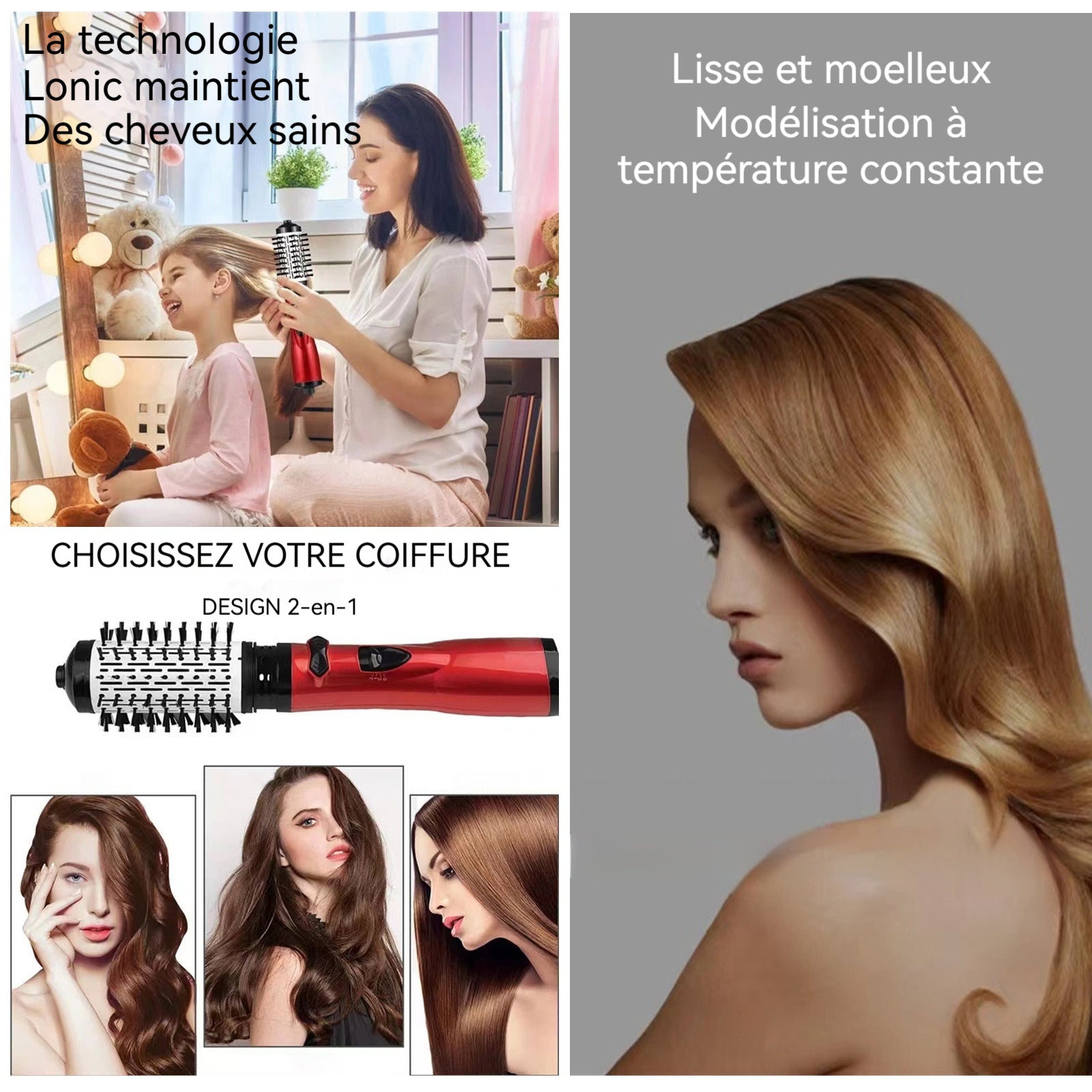 3. Outil de coiffure multifonction : Parfaitement à la fois sèche-cheveux et outil de coiffage, il vous permet de sécher vos cheveux facilement, de les lisser rapidement ou de créer des boucles souples.