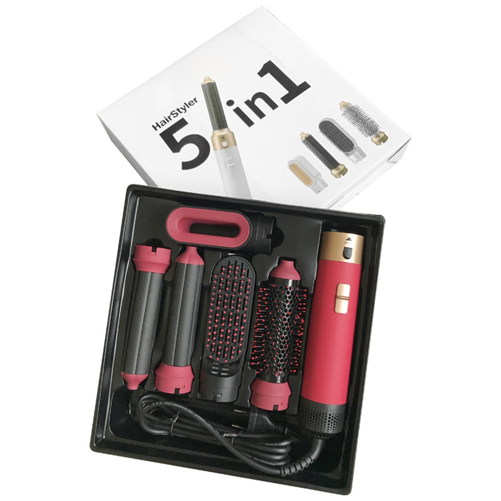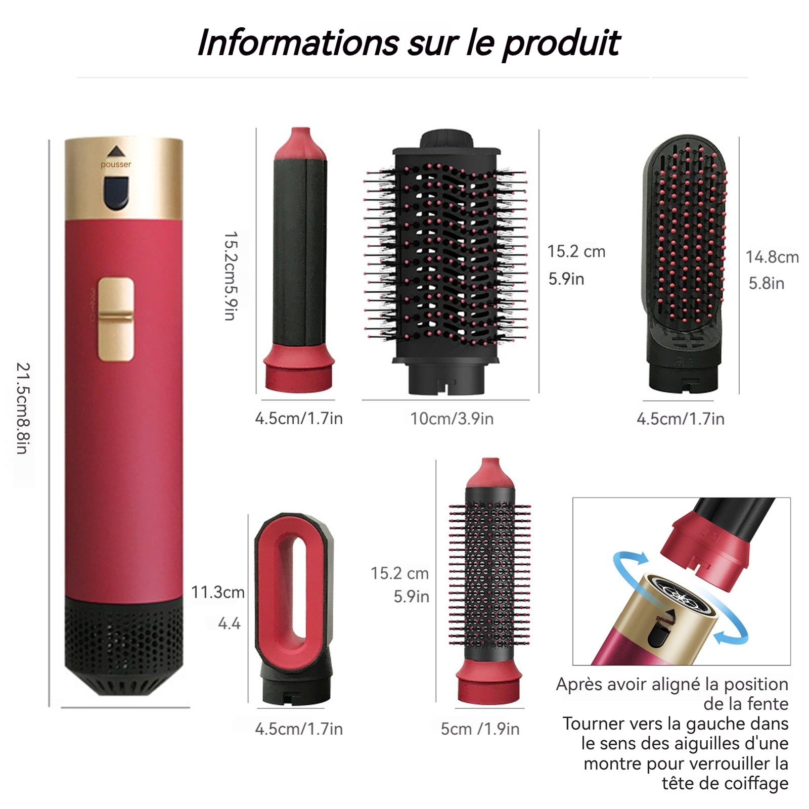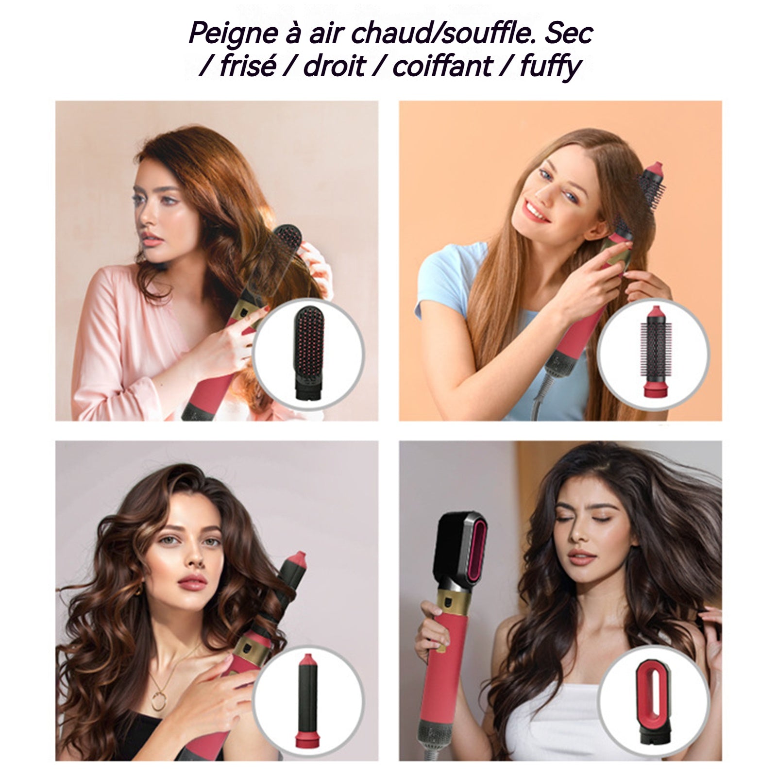 Brosse soufflante 5 en 1 Multifonction 1000W Fonction lissage/bouclage 3 Vitesses de température Kit de brosse chauffante Rouge