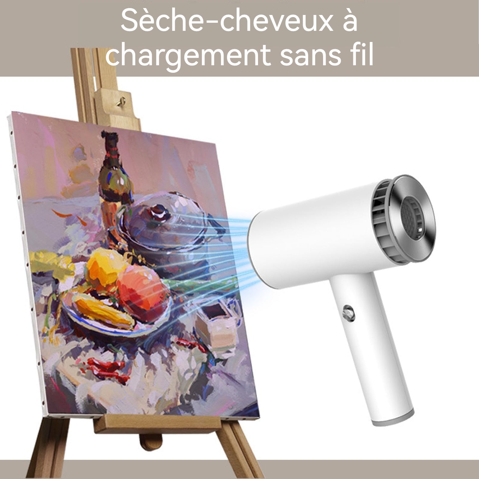 3. Autonomie durable : Le sèche-cheveux est équipé d'une batterie lithium de 2600 mAh, offrant une puissance élevée, permettant une utilisation de 40 à 50 minutes, avec un temps de charge d'environ 4 heures.