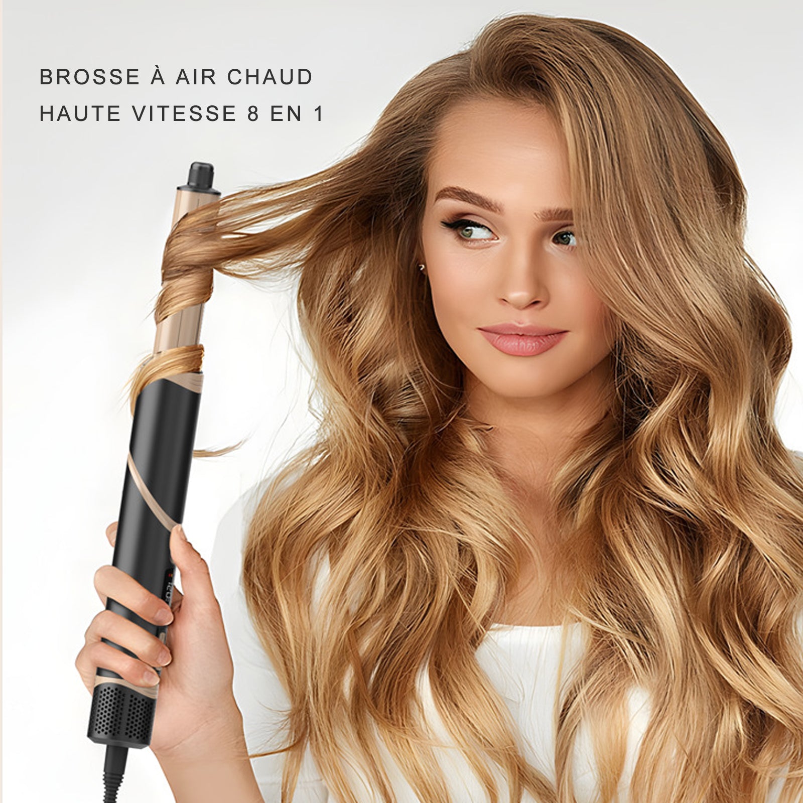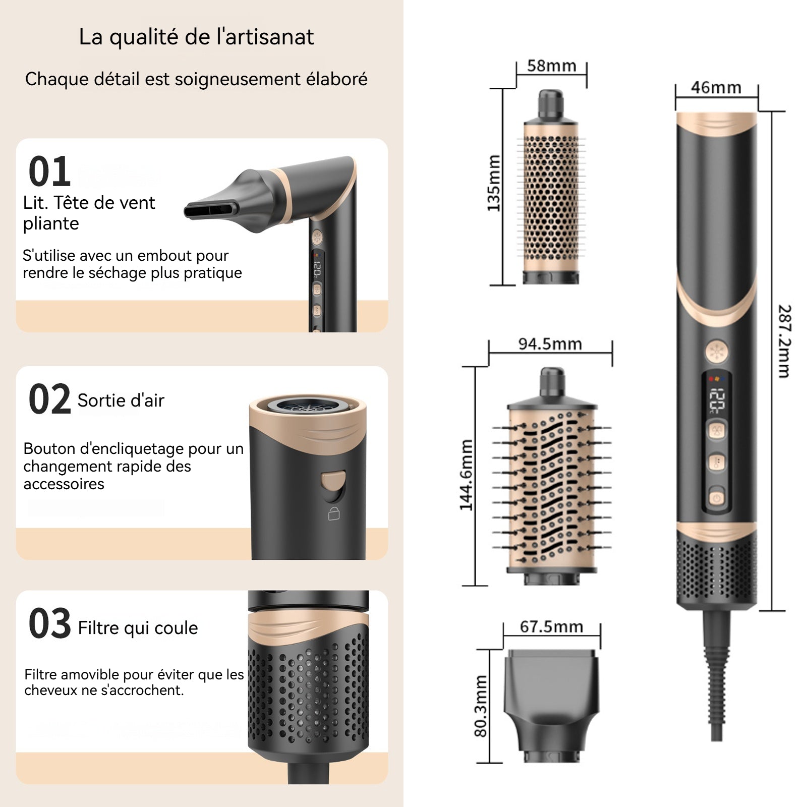 Sèche cheveux Pliable 8-en-1 1400W 3 vitesses Contrôle de la température à 4 vitesses Coiffage multifonctions Moteur 110,000RPM