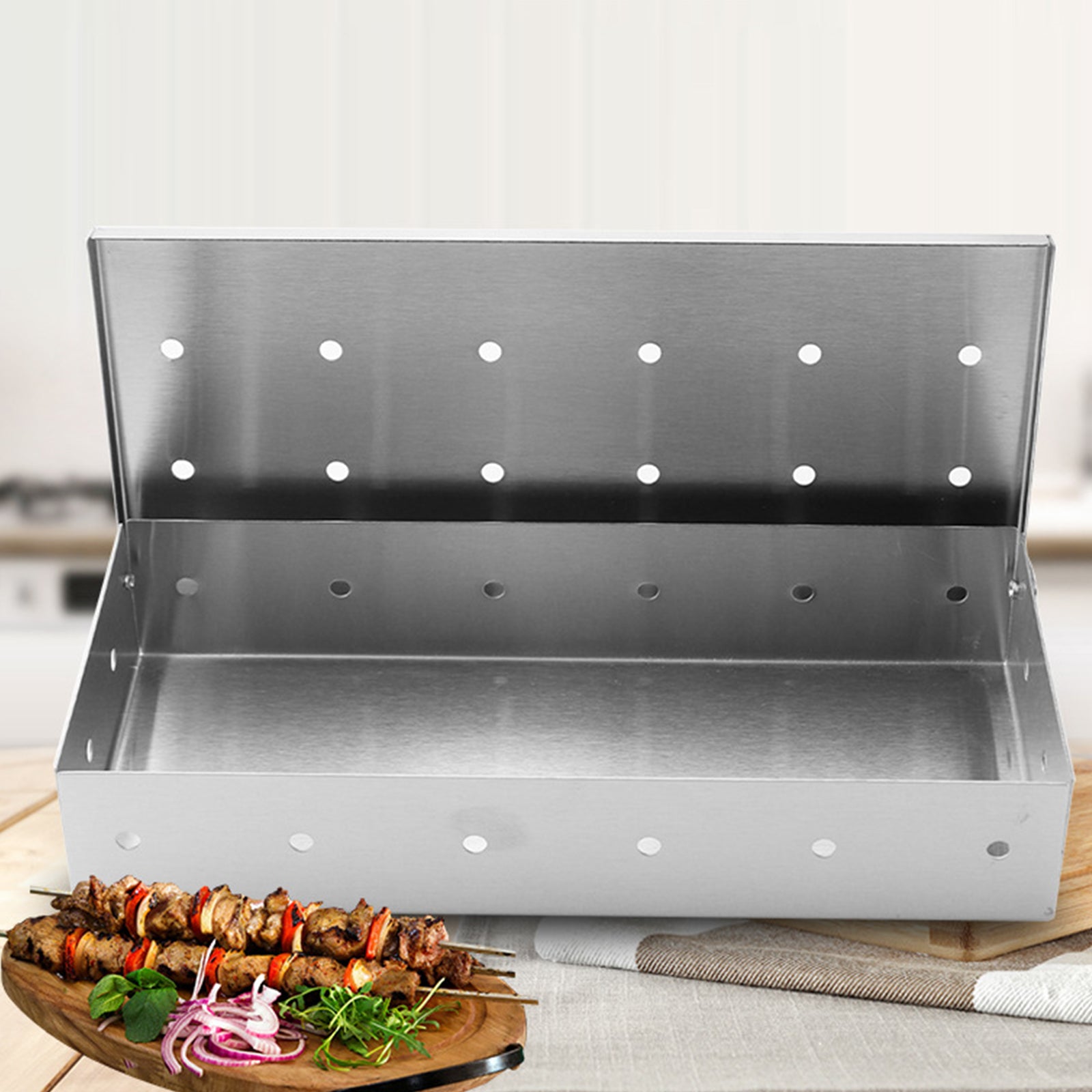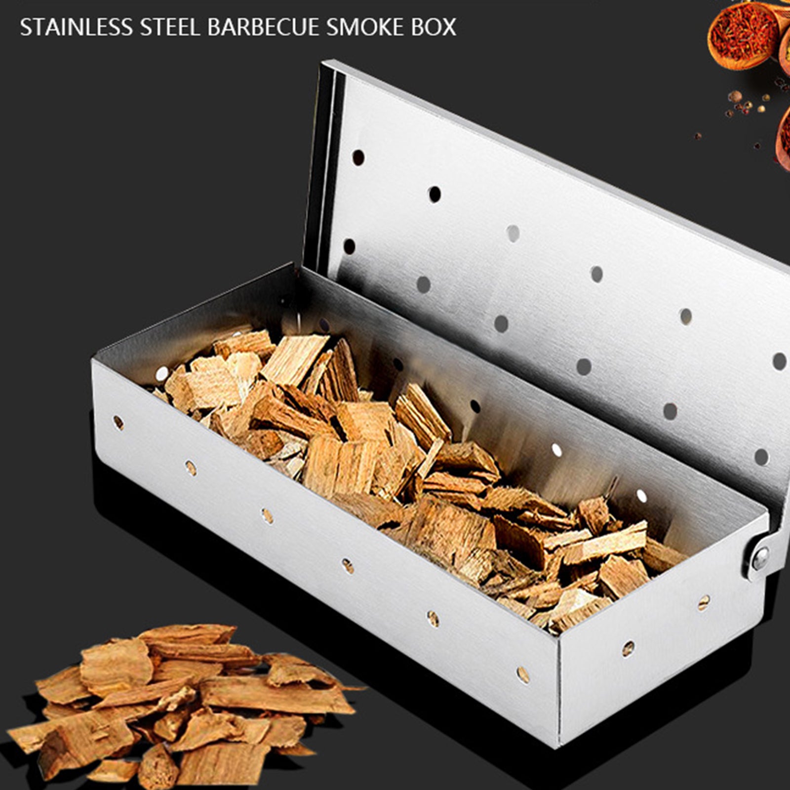 TD® Boîte à fumée en acier inoxydable outils de barbecue boîte en bois de fruits boîte à cigarettes assortie pour barbecue