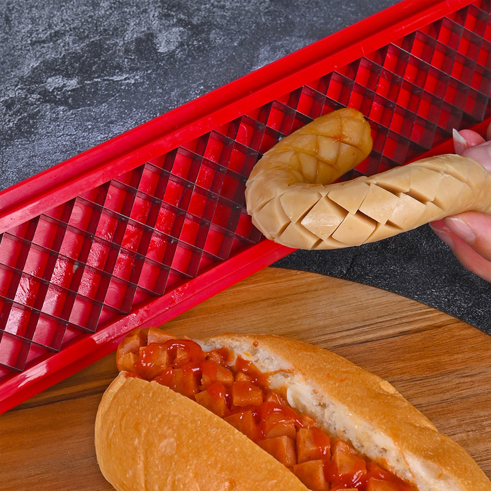 ✅ [Gaufrage facile en une seule pression] : hot-dog coupé avec lame intérieure, 40 lames peuvent être gaufrées à volonté