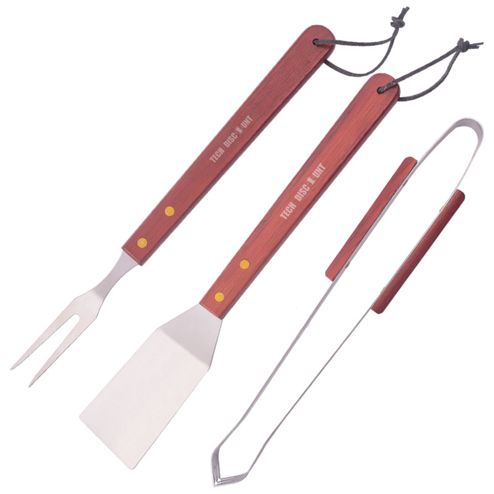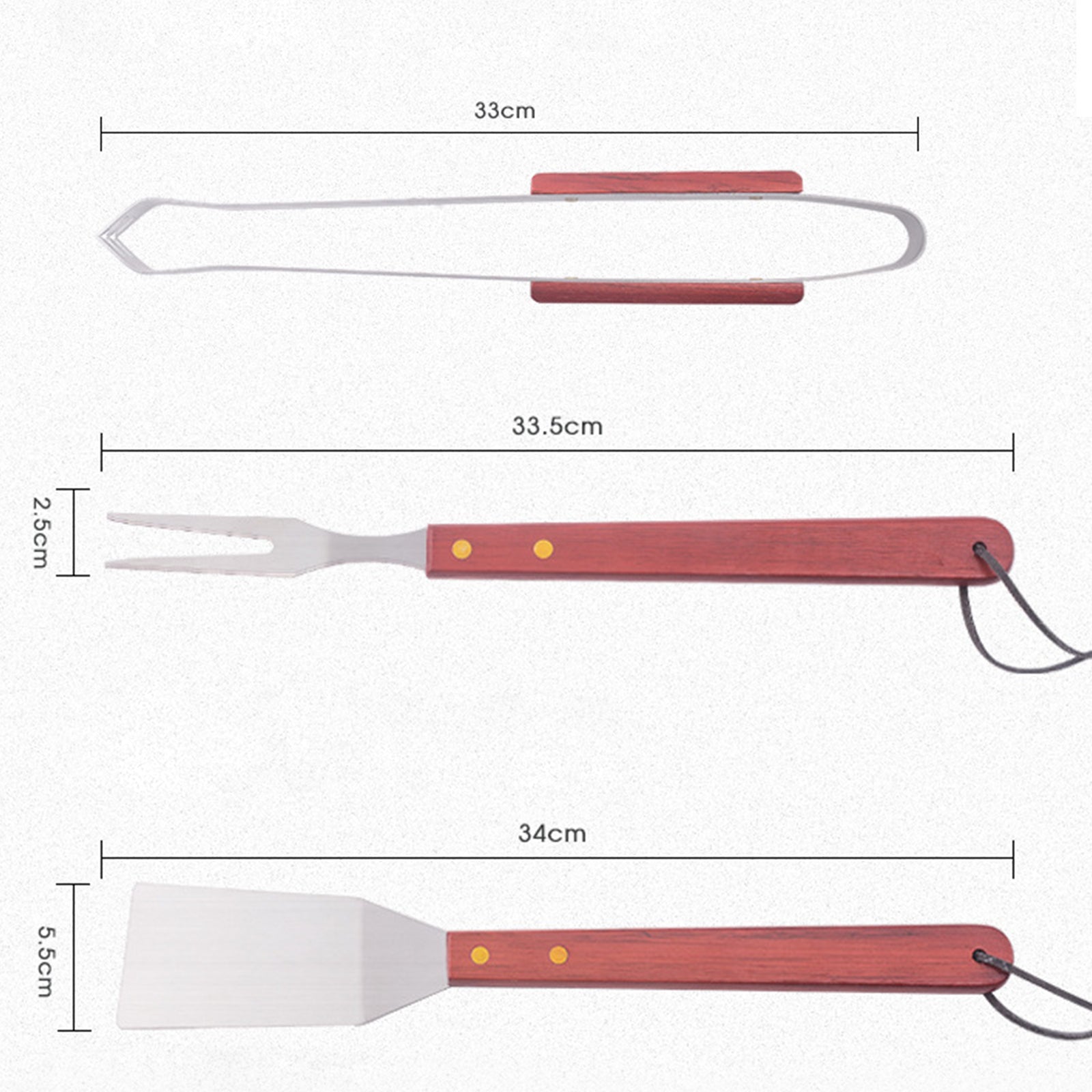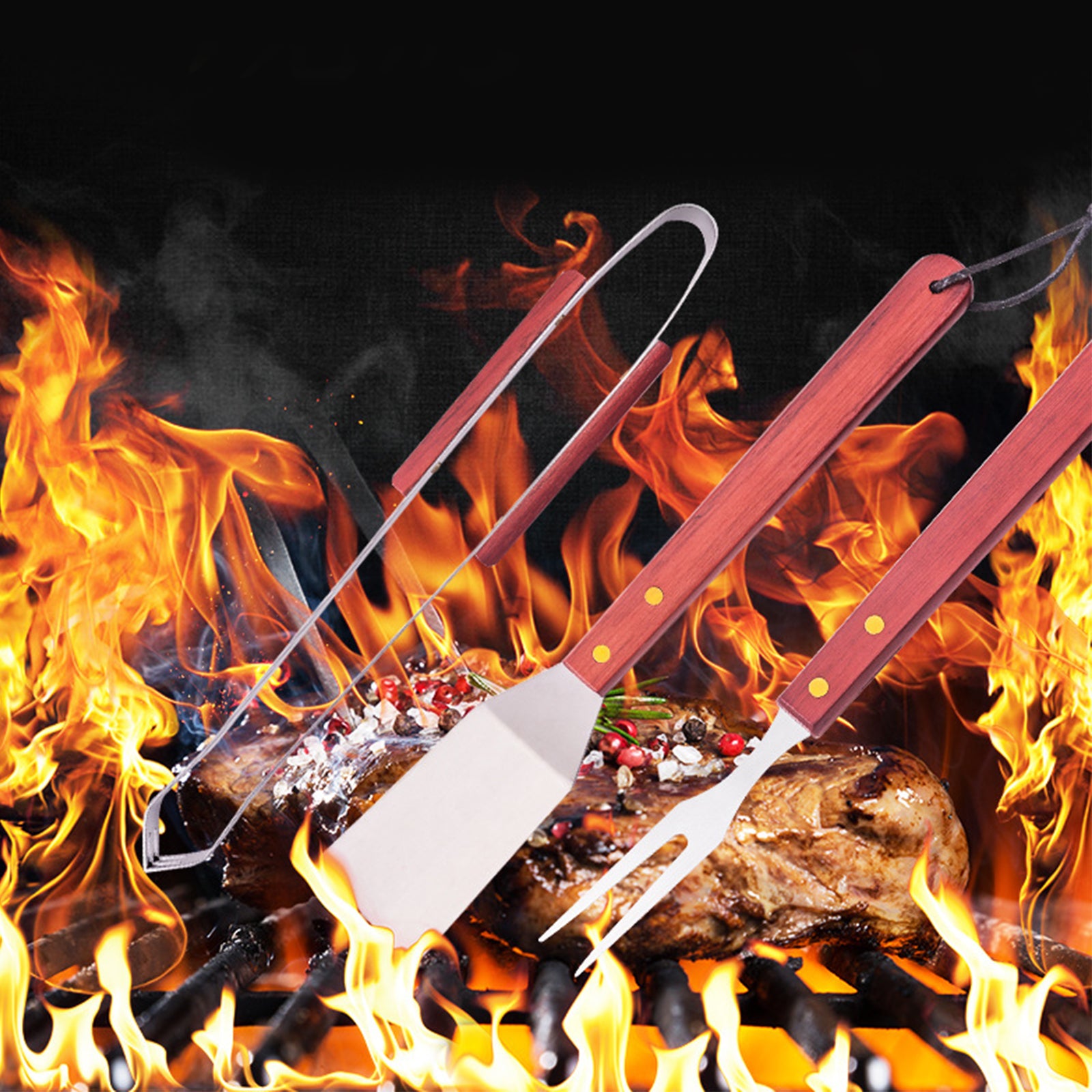 TD® Outil de barbecue ensemble de combinaison trois pièces de barbecue en acier inoxydable manche en bois fourchette pelle pince gri