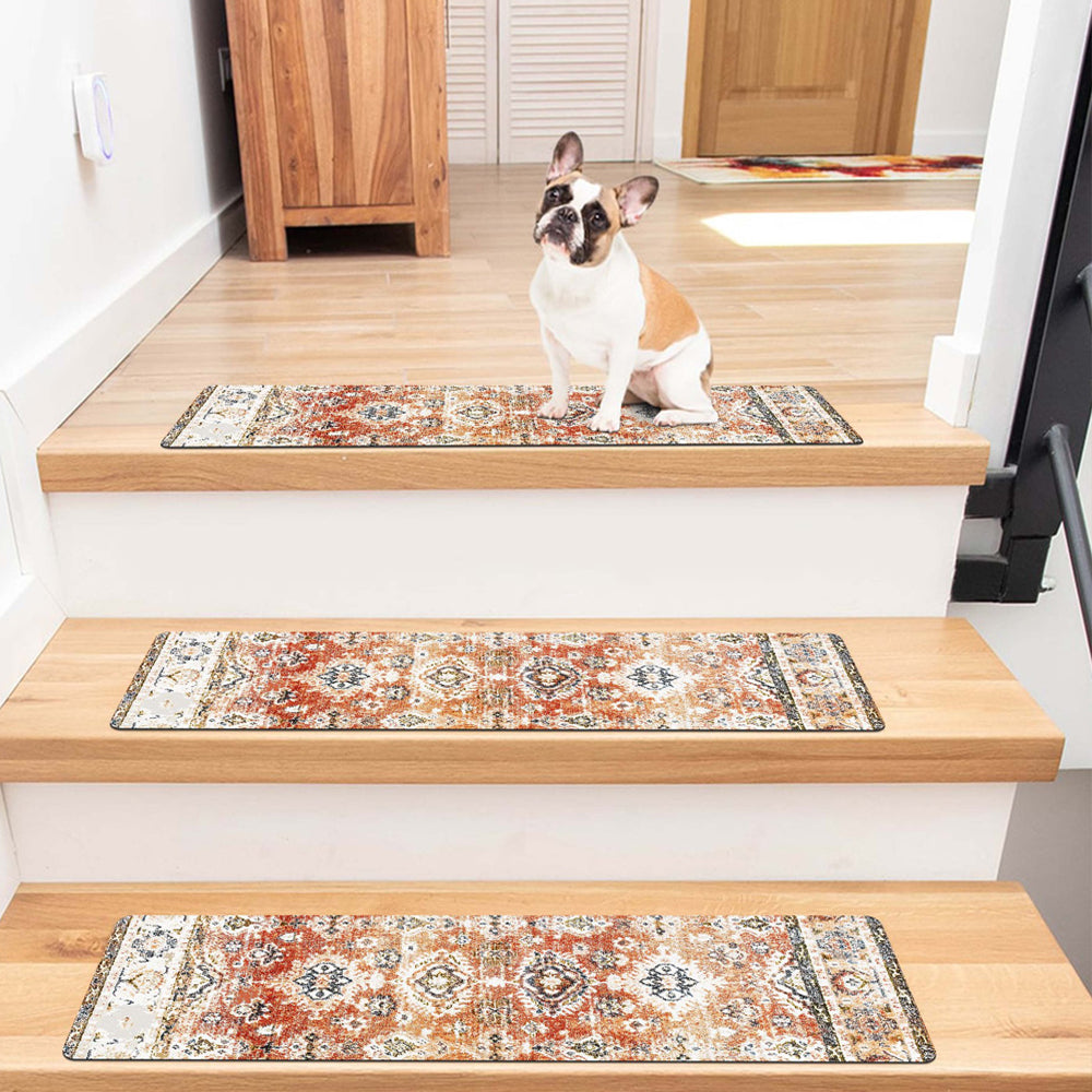 Tapis d'escalier 5 pièces d'imprimé floral escalier maison pieds antidérapants autocollants sans colle et résistants à la saleté
