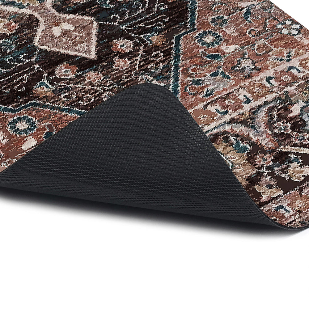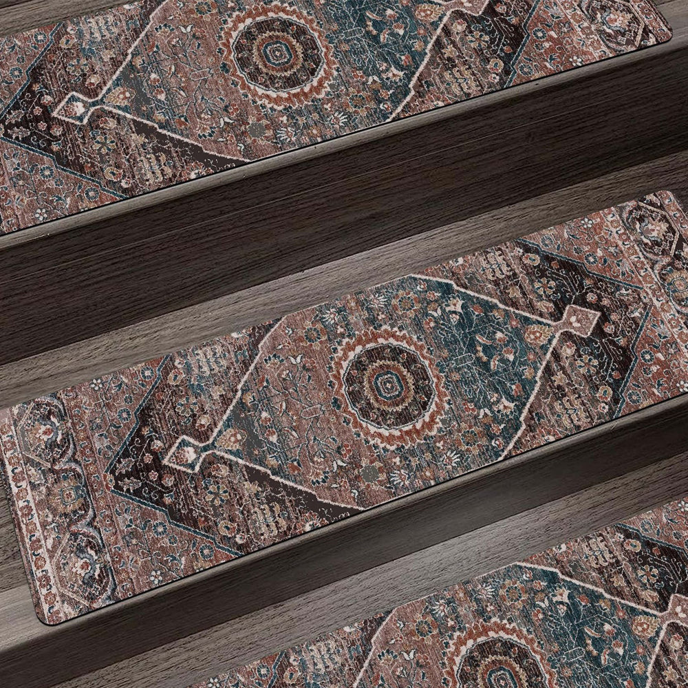 Tapis d'escalier 5pcs Classical Floral Print with Adhesive 20*75cm Anti-slip Stair Mats Elderly Pets Brown