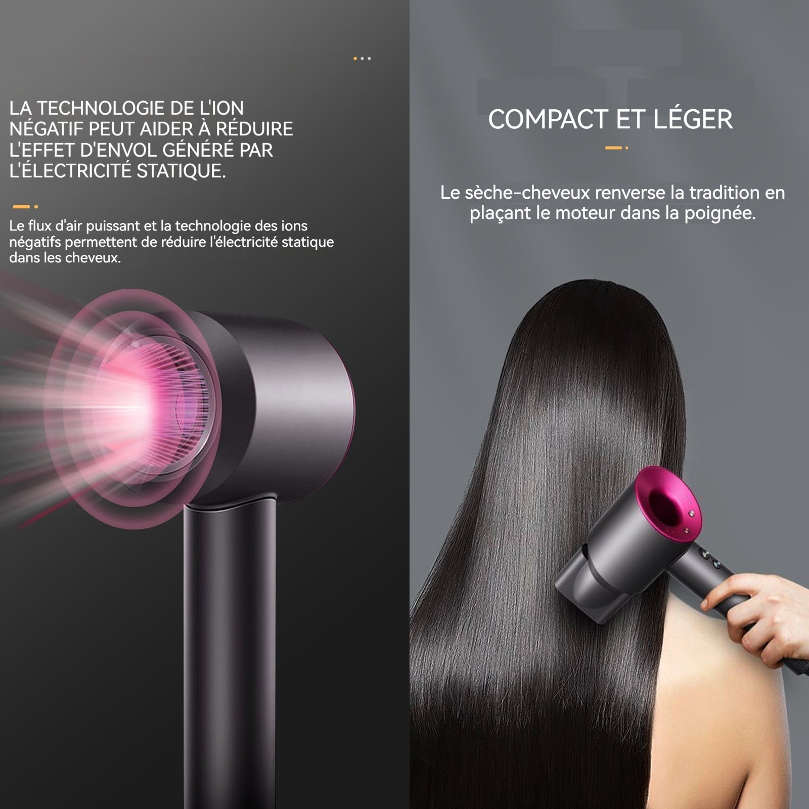 Seche cheveux professionnel Ionique 1600w LED 3 vitesses,4 températures,silencieux,sèche-cheveux ionique avec 1 diffuseur 4 buses