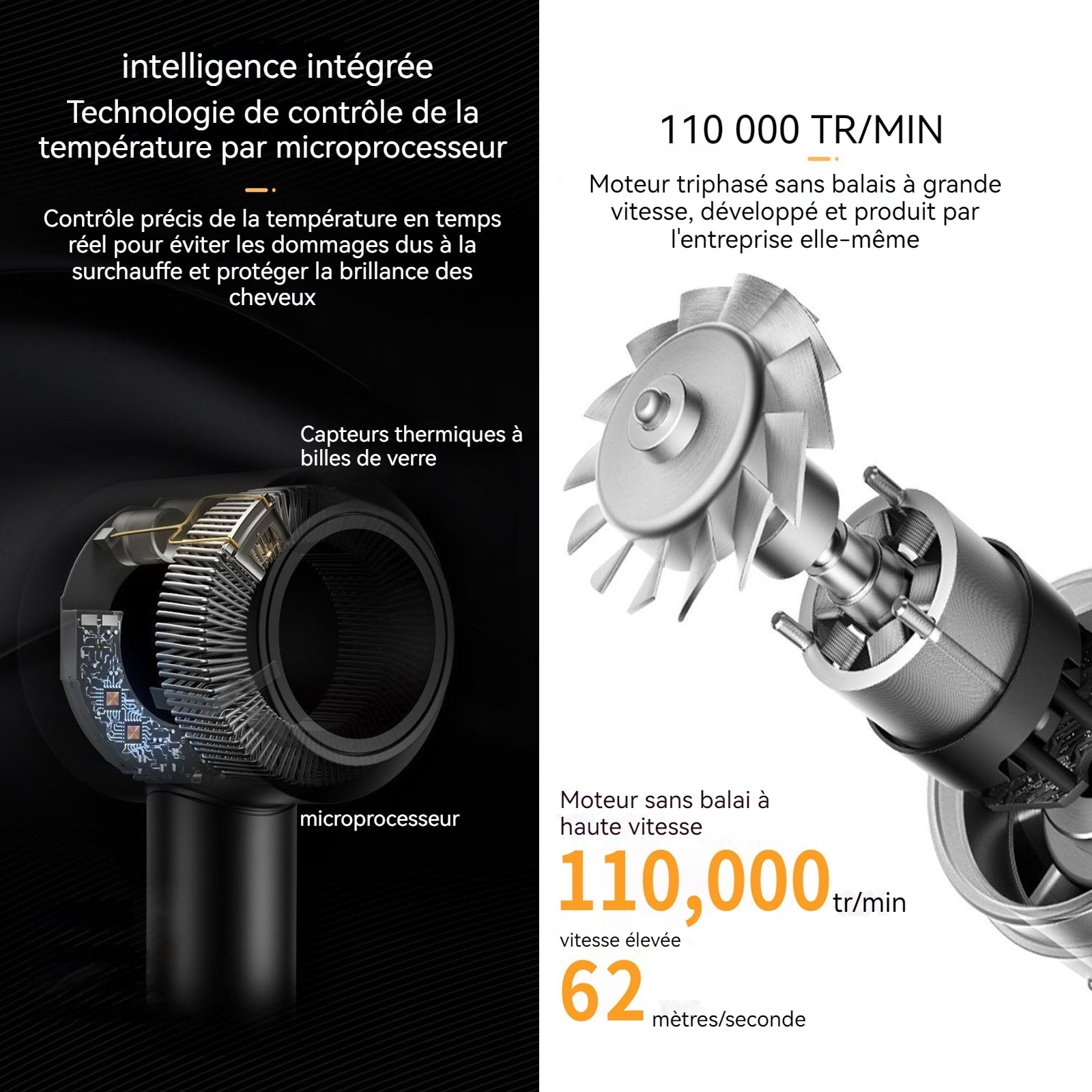 2. Écran LED : Le sèche-cheveux est équipé d'un écran LED qui affiche clairement l'état de fonctionnement actuel, y compris la vitesse du souffle et les réglages de température, améliorant ainsi l'expérience utilisateur.