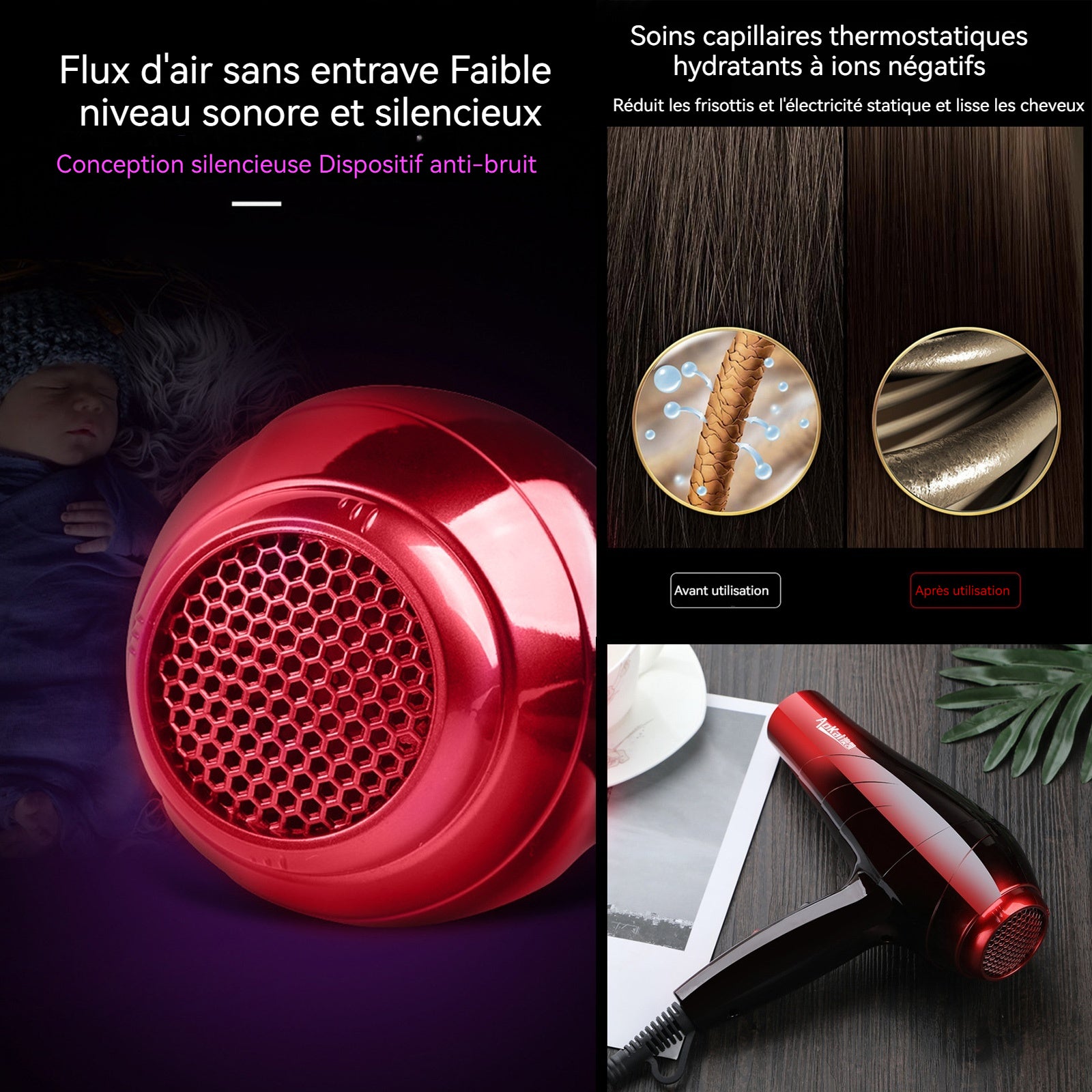 Seche cheveux professionnel ionique 800W 220V 2 modes de température 2ème vitesse seche cheveux rouge réglage air froid air chaud
