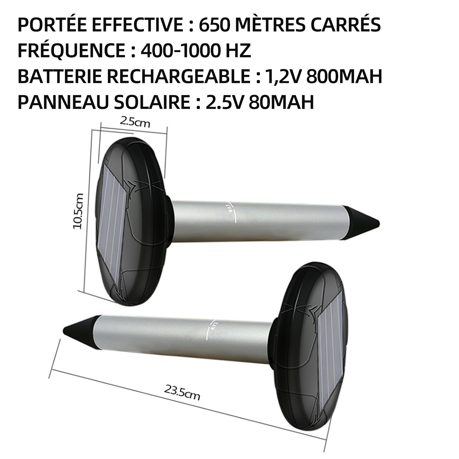 Répulsif à ultrasons solaire 2pcs répulsif solaire imperméable contre les campagnols dissuade taupes gaufres les serpents les rats