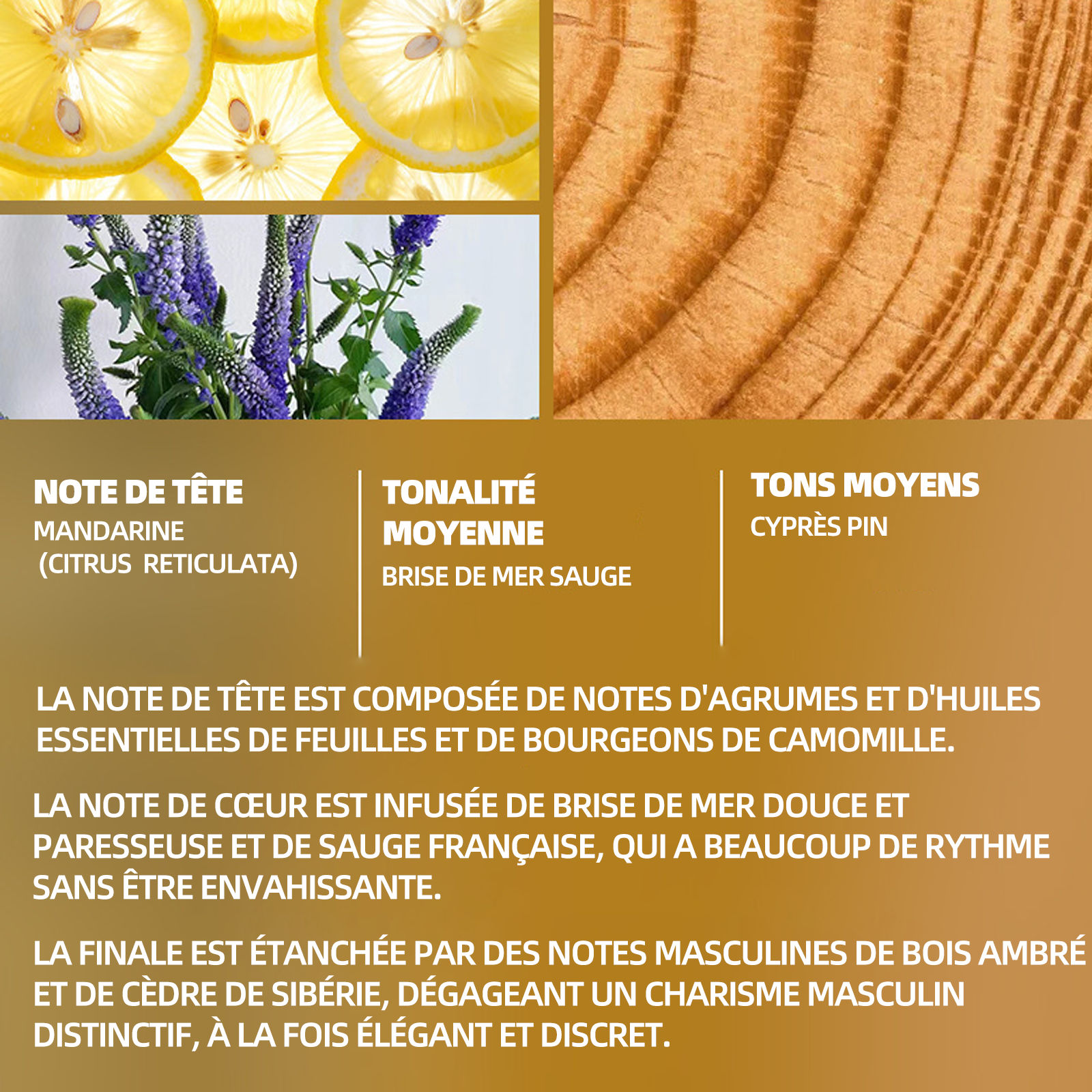 4.Richesse des couches : La note de tête dévoile la fraîcheur des agrumes, la note de cœur révèle la naturalité de la brise marine et de la sauge, tandis que la note de fond évoque la profondeur du cèdre et du pin, offrant une fragrance riche et complexe.