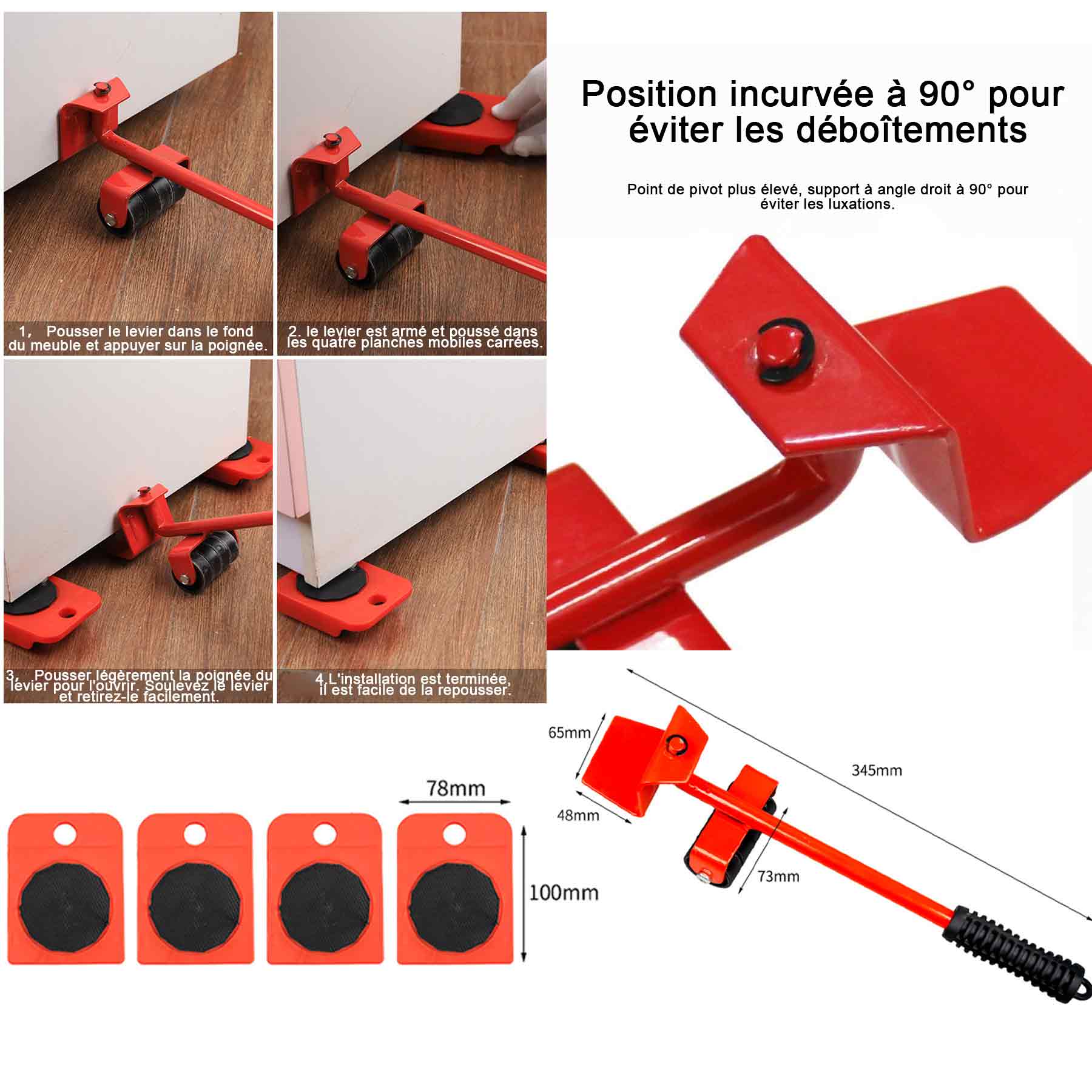 Leve meuble 150kg capacité de charge grue 1 tige de levage et 4 kit de deplace meuble lourd sans effort deplace meuble a roulette