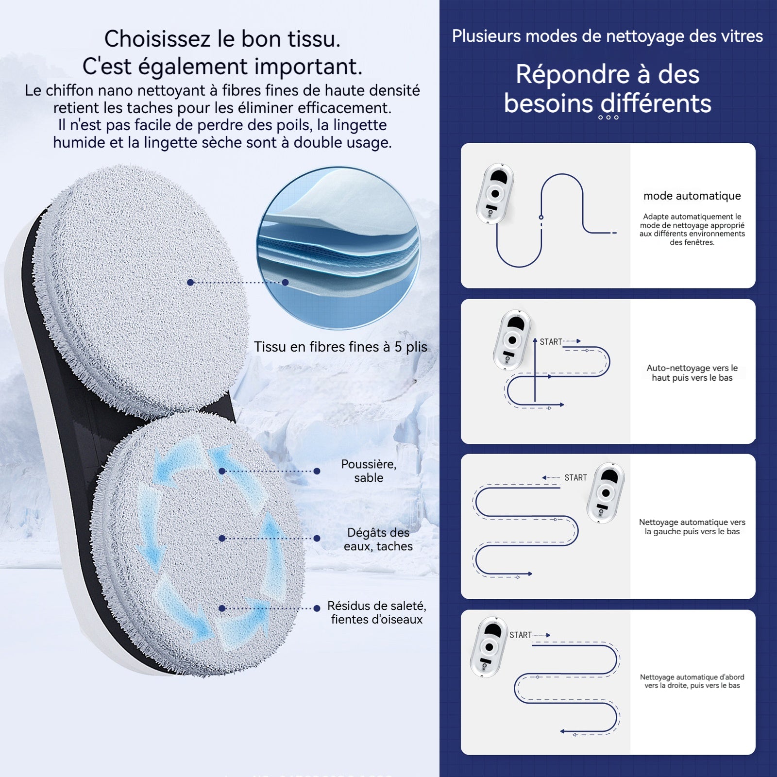 Robot laveur de vitre 5600pa navigation intelligente robot nettoyeur de vitre avec télécommande et 10 chiffons et corde sécurité