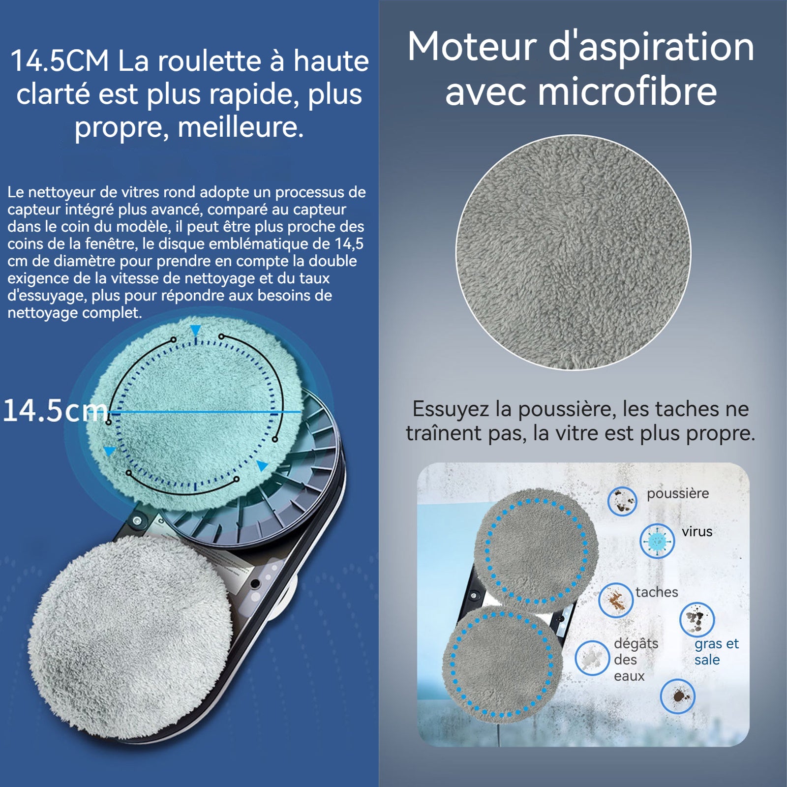 4. Portable et facile à utiliser : Le robot de nettoyage de fenêtres est léger et portable, facile à utiliser, et est équipé d'une télécommande, vous permettant de contrôler le processus de nettoyage à distance, pour une utilisation plus pratique et flexible.