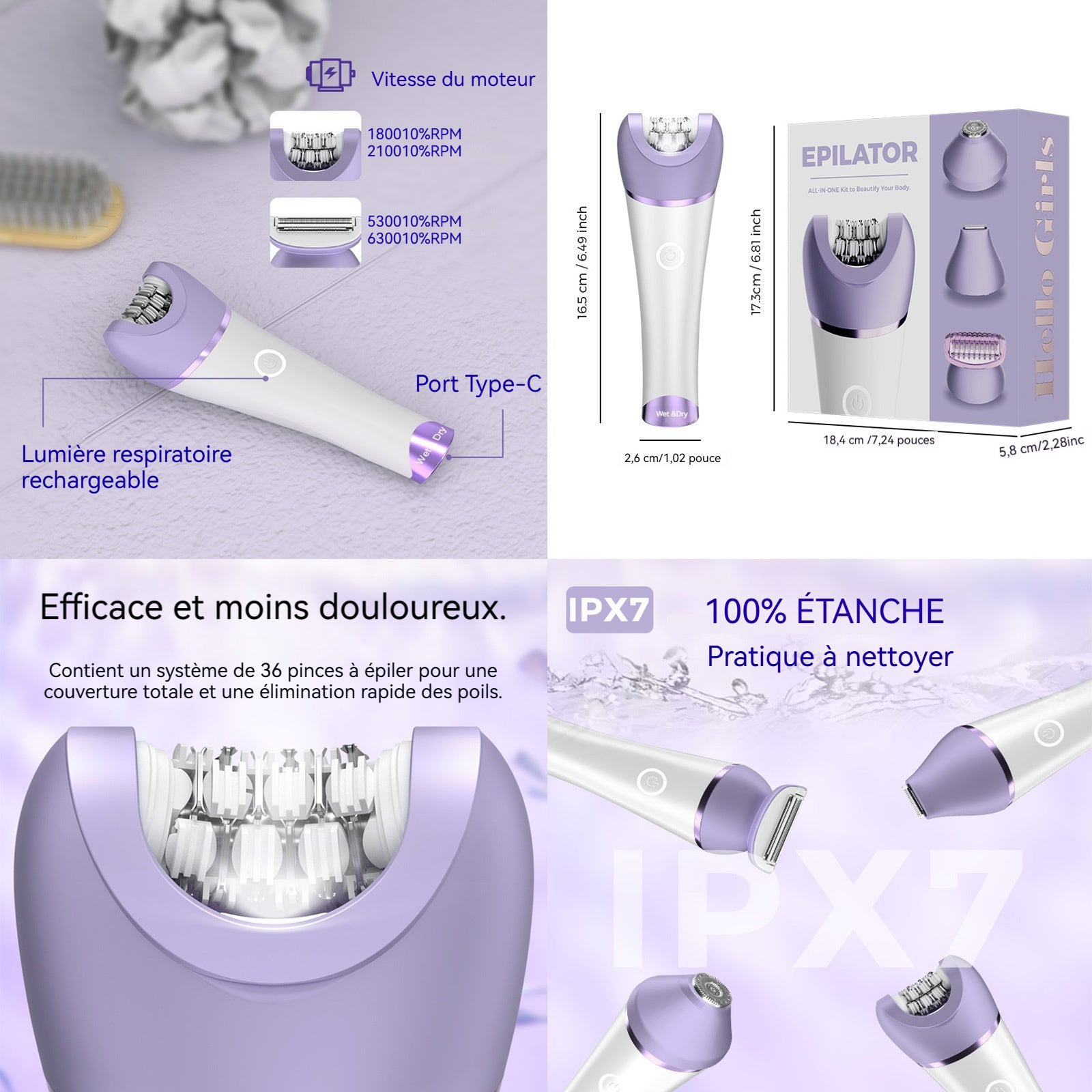 Épilateur pour femme électrique sans fil multifonctionnel 4 en 1 étanche ipx7 rasoir pour femme avec 9 accessoires humide et sec