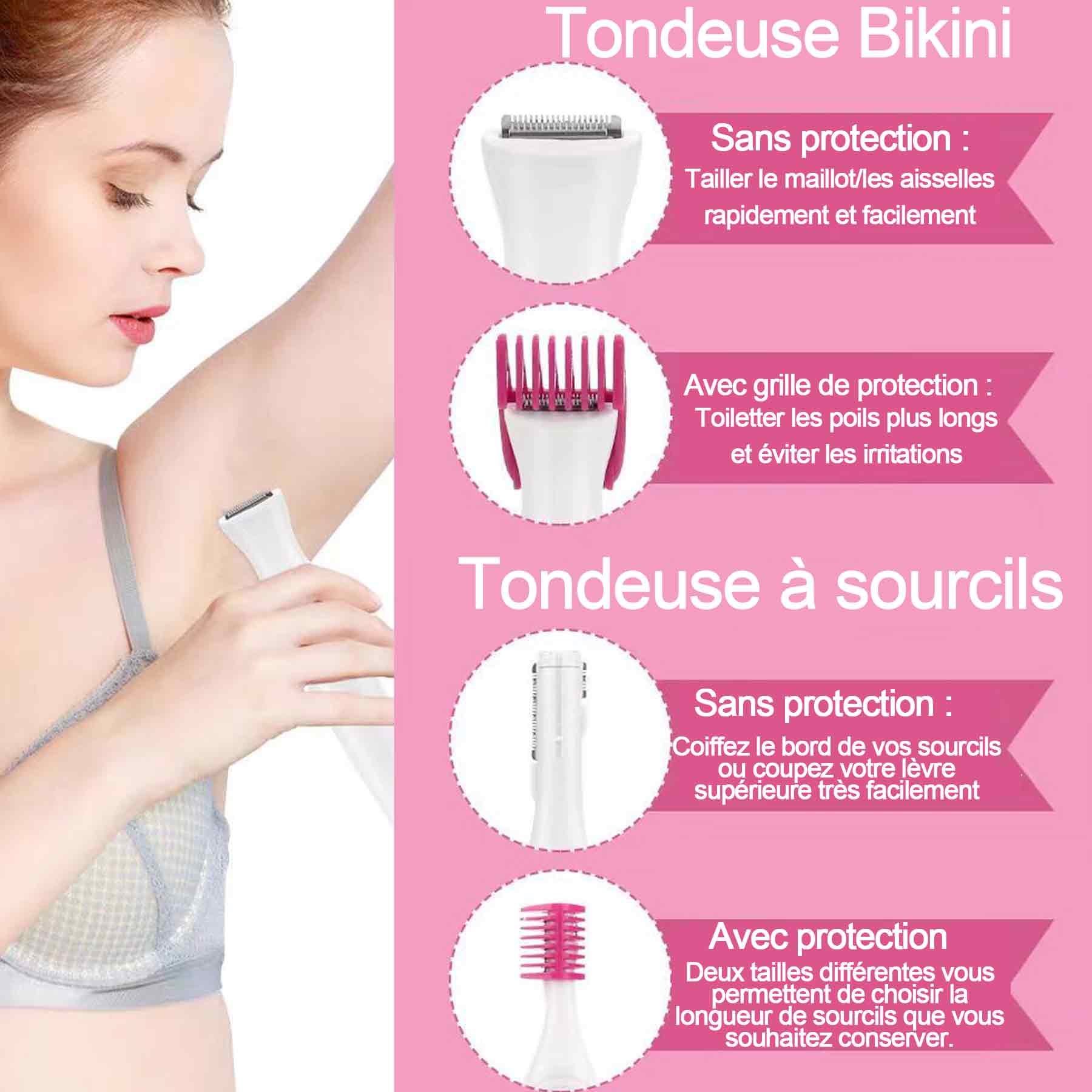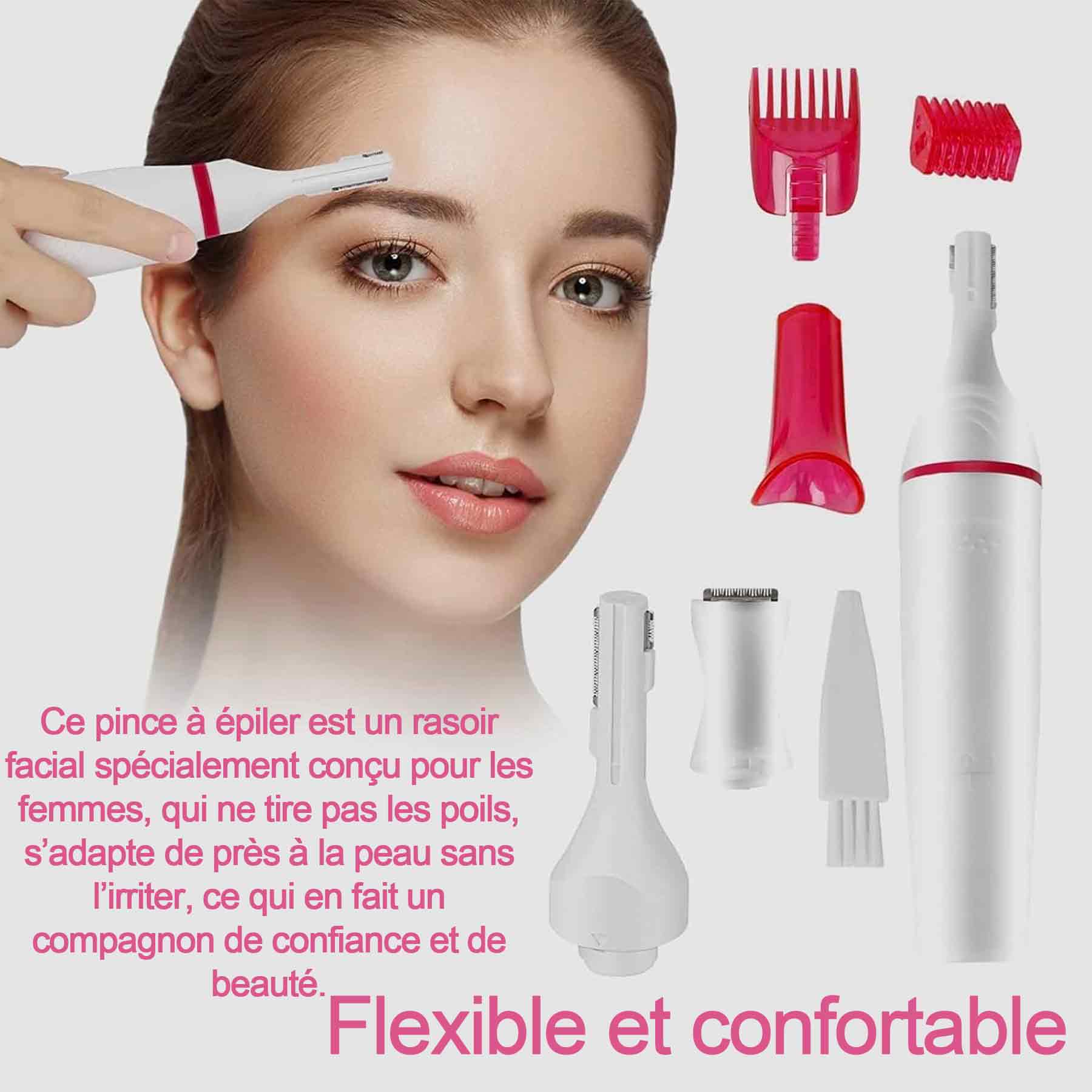 1. Multifonctionnel : Ce rasoir pour femmes est équipé de 4 têtes interchangeables ayant différentes fonctions, adaptées au visage, aux sourcils, aux lèvres, au nez, aux jambes, aux aisselles, au maillot, aux doigts, etc.