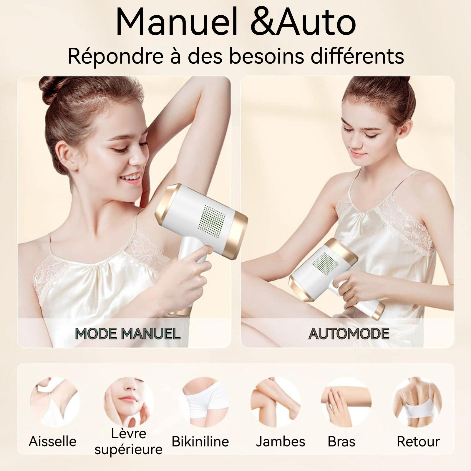 3. Épilation efficace : La technologie de lumière pulsée de cet épilateur couvre rapidement de grandes zones d'épilation, offrant une efficacité durable, et un usage prolongé peut permettre d'obtenir une peau lisse.