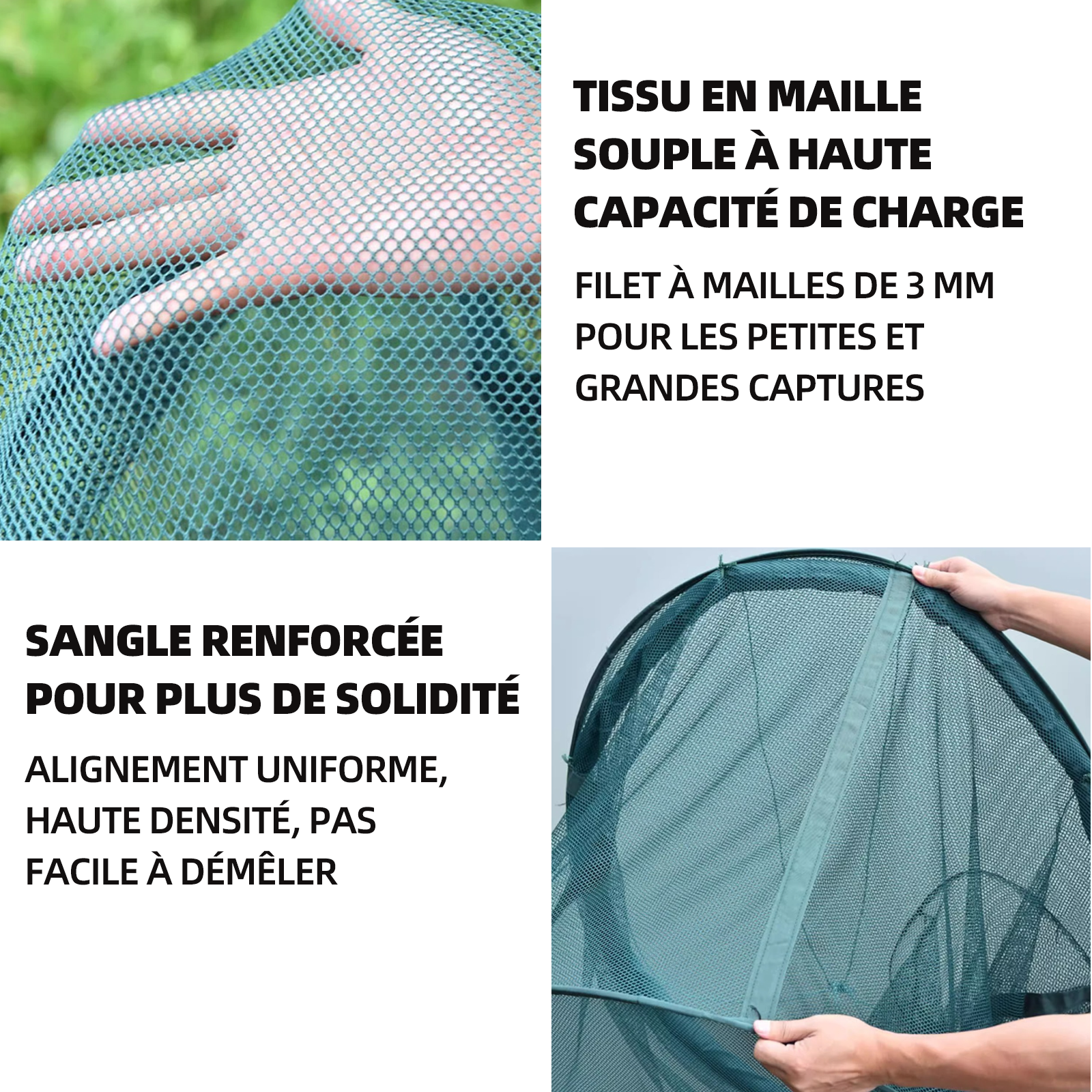 2. Durabilité : Ce panier à poissons est fabriqué en nylon avec un filet épais, ce qui le rend durable et résistant.