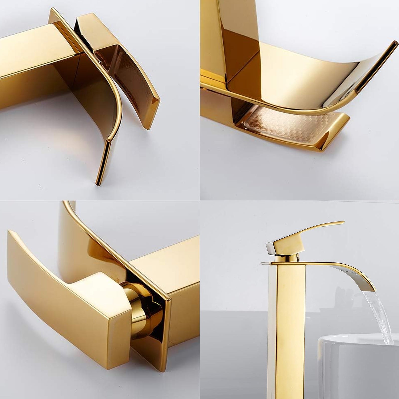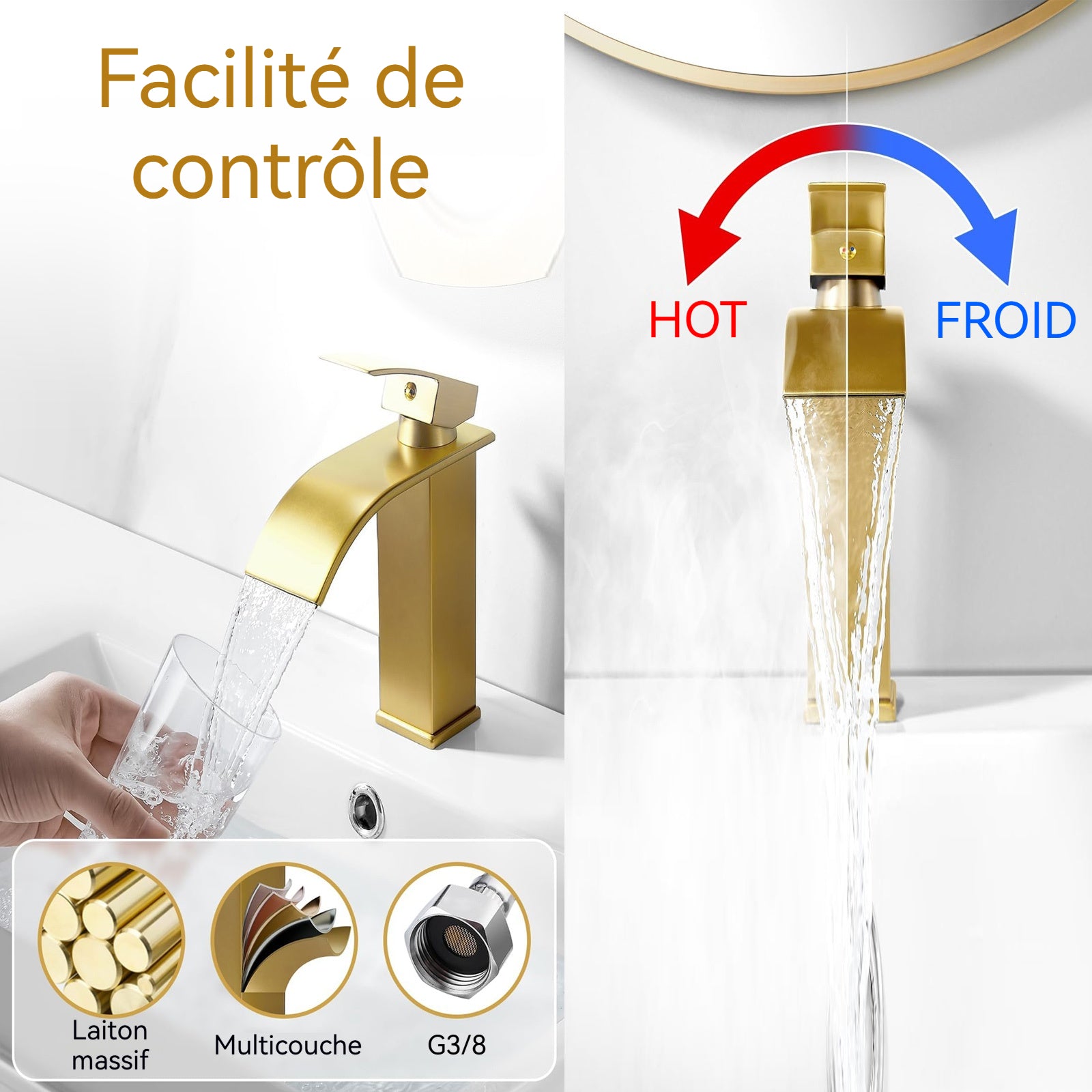 Robinet 30cm robinet scandinave en cuivre doré robinet plat de 6 cm de large simule l'écoulement naturel de l'eau mitigeur lavabo