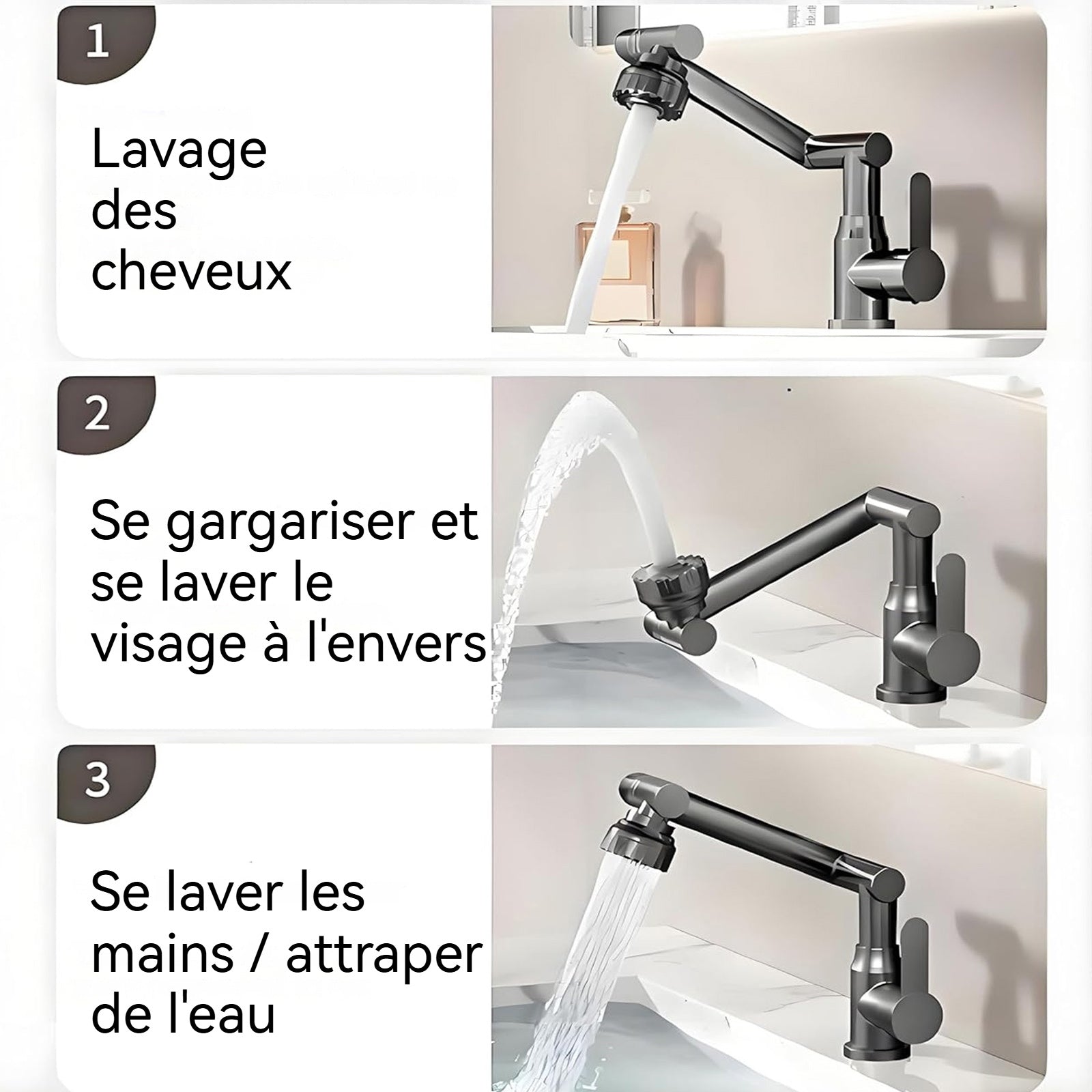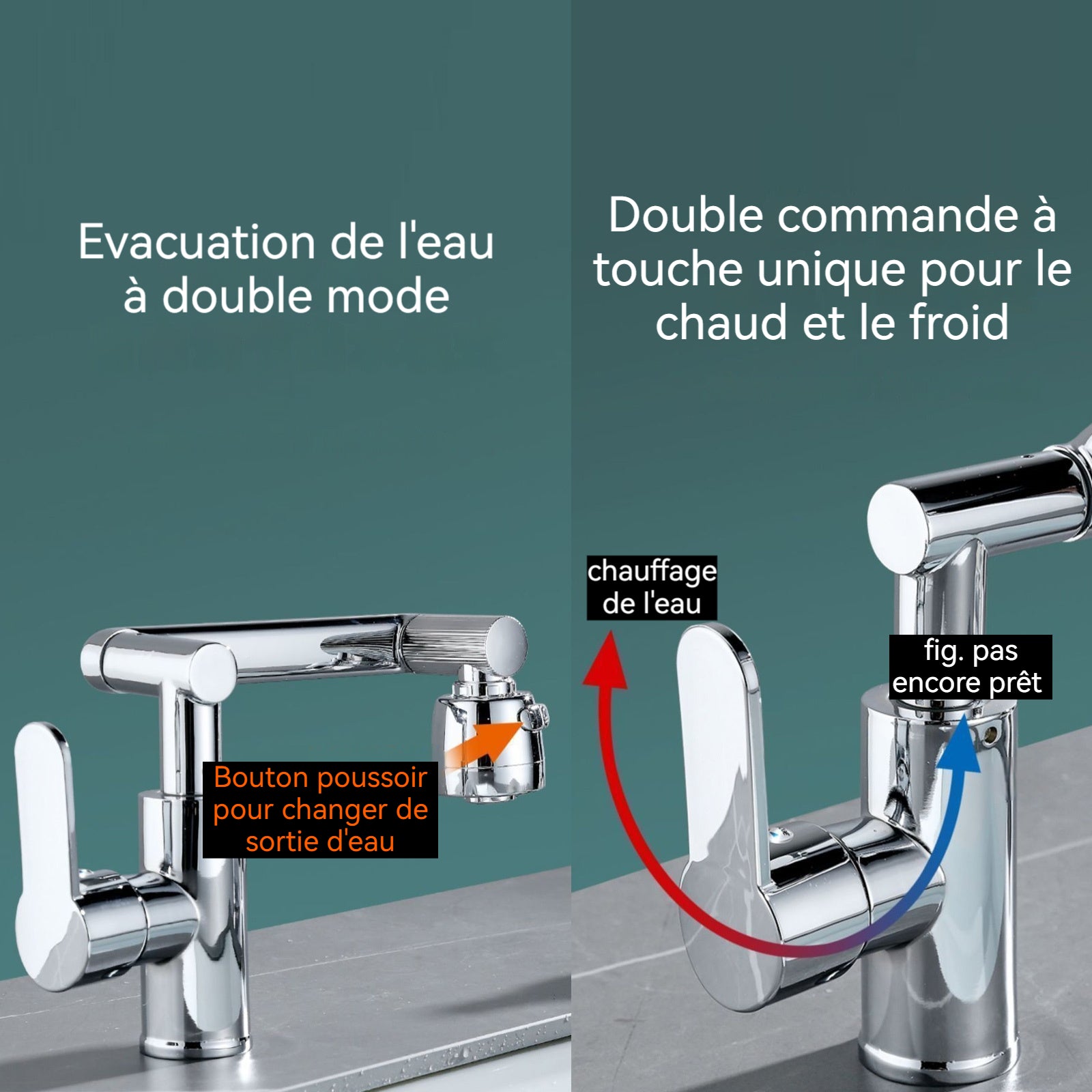 Robinet 33cm robinet pivotant universel mitigeur lavabo chaud et froid 2 modes pivotant hauteur réglable interrupteur flexible