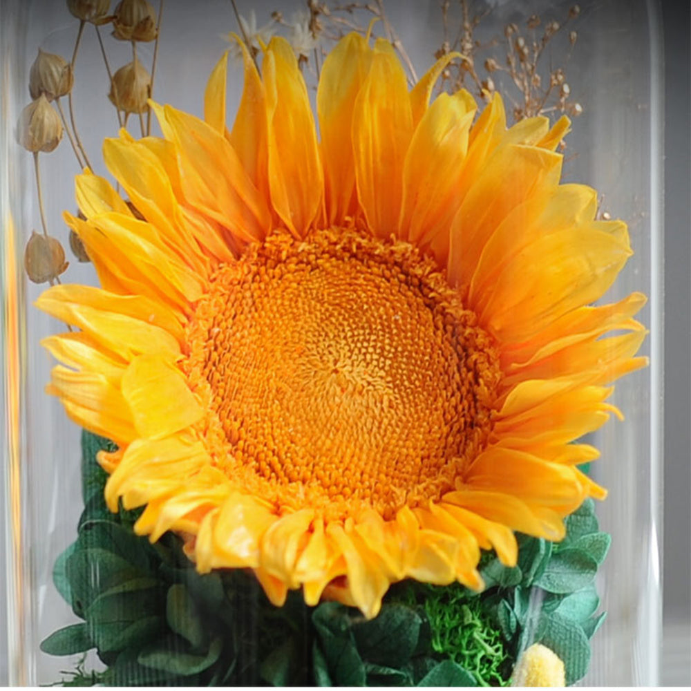 Couverture en verre de tournesol, vraie fleur immortelle, produit fini, ornements pour cadeaux d'anniversaire et de saint-valentin