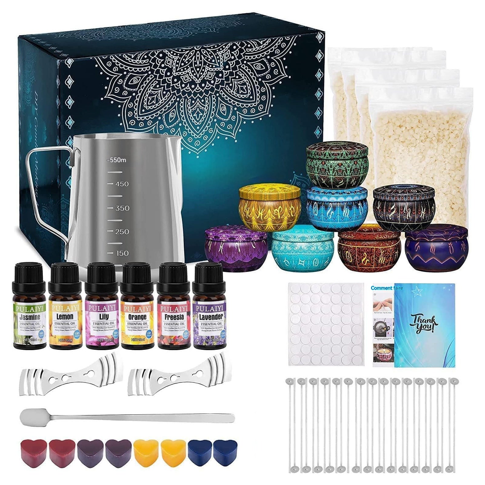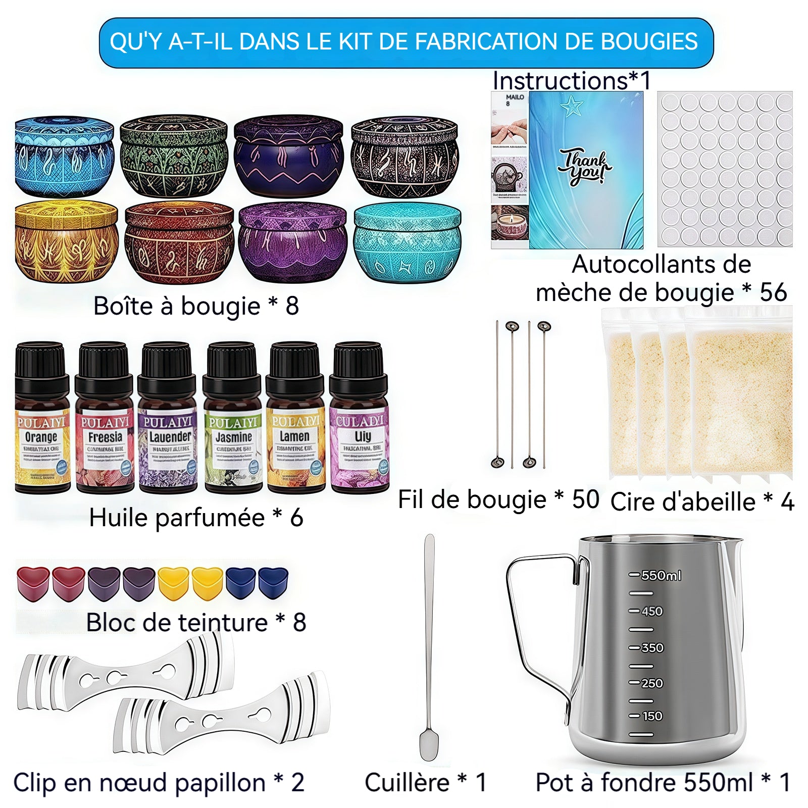 Kit de Fabrication de Bougies 550 ml 21 cm 6 huiles essentielles 8 flacons de couleurs Créez facilement vos bougies aromatiques
